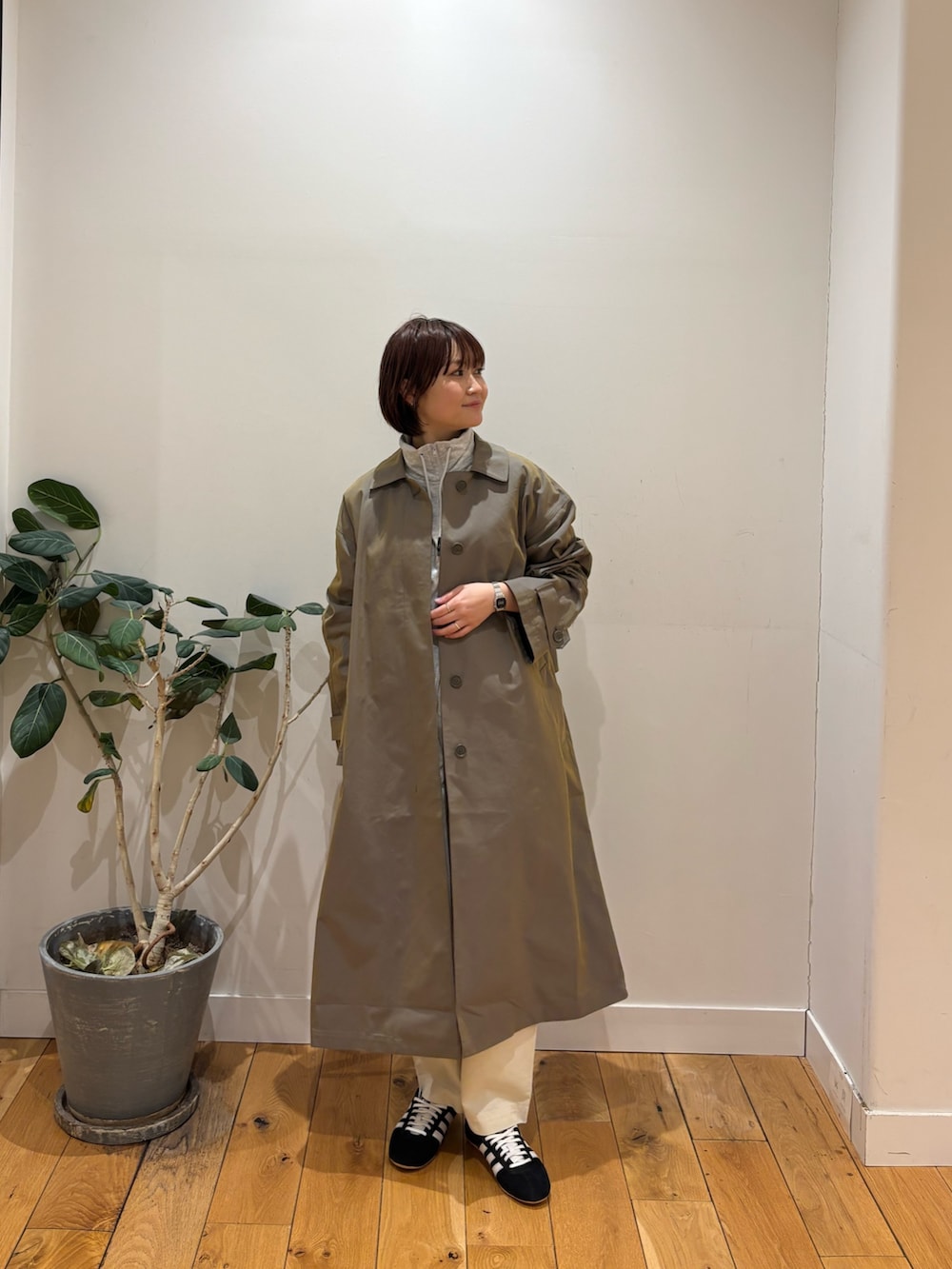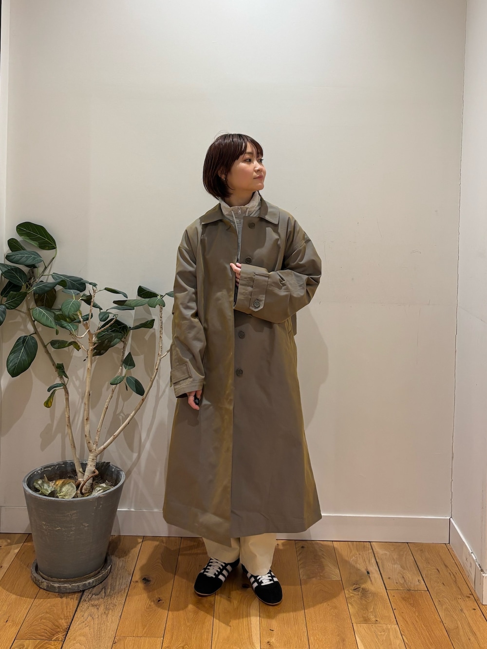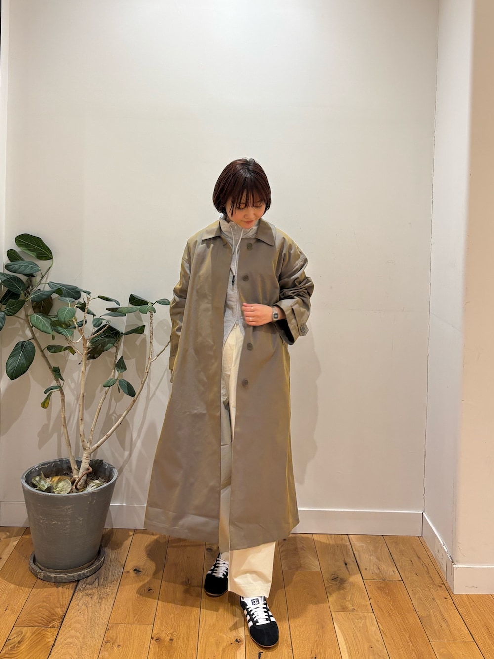 エカル新作のスウェットとステンカラーコート着用しています!