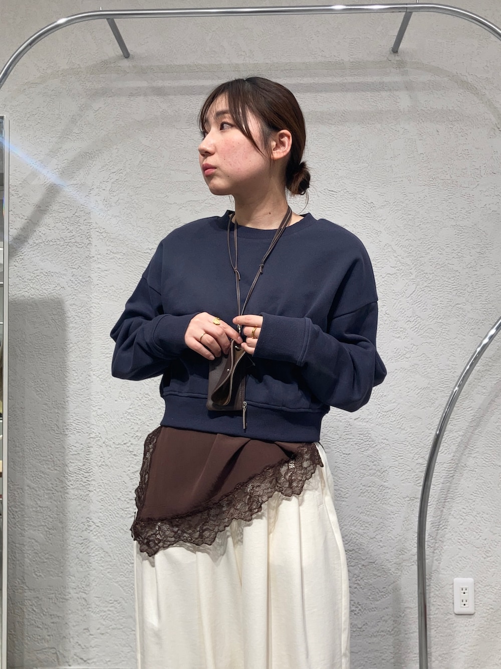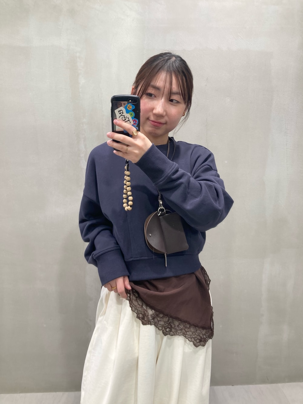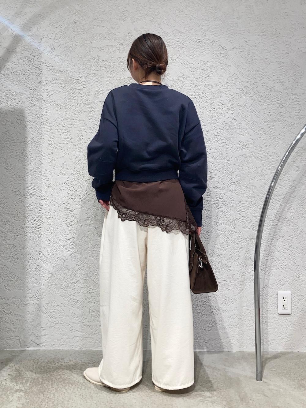 パンツもネイビーにしてワントーンもかわいいですが、春らしい色合いを意識して、パンツはオフホワイトにしています☁️