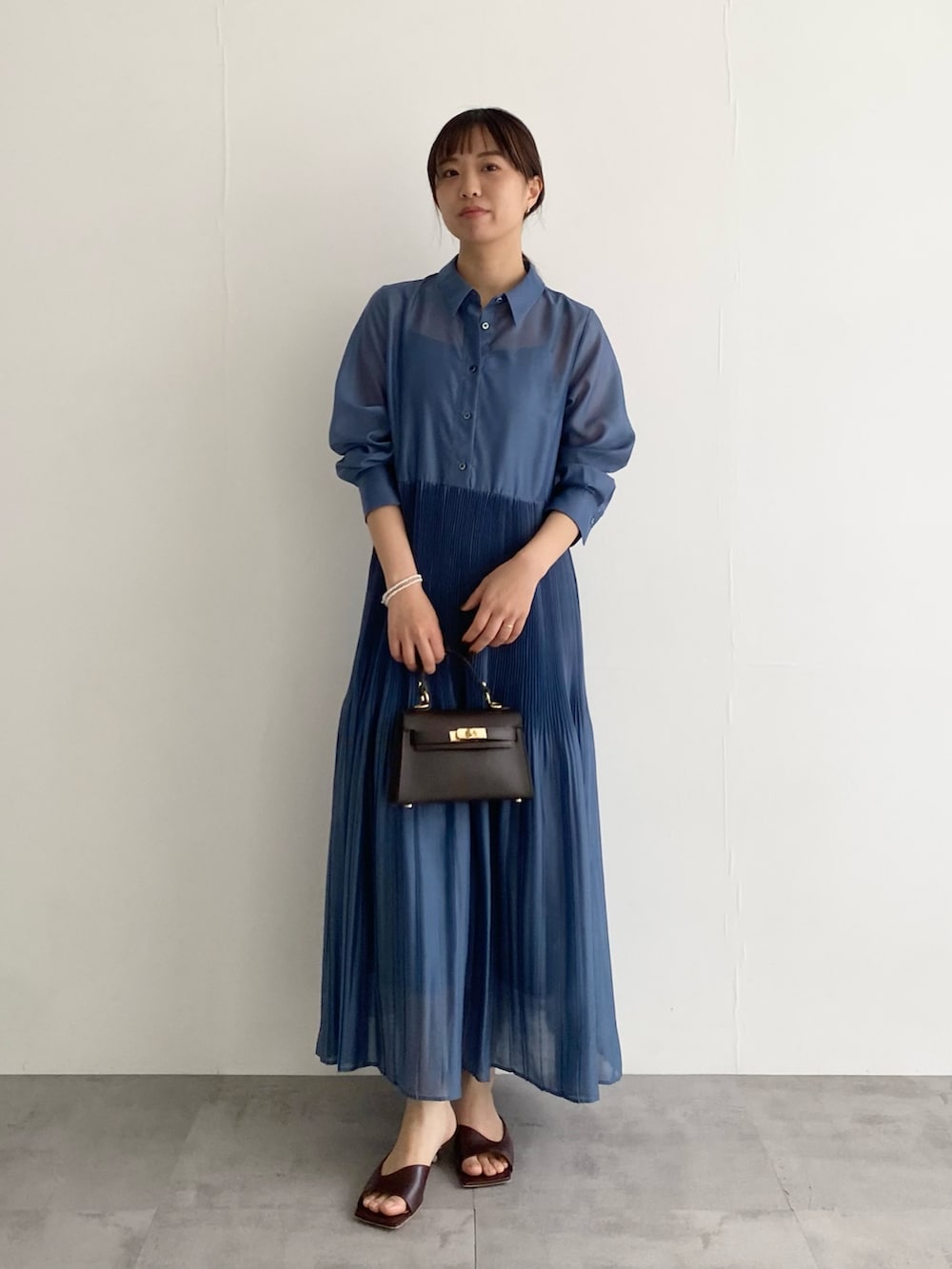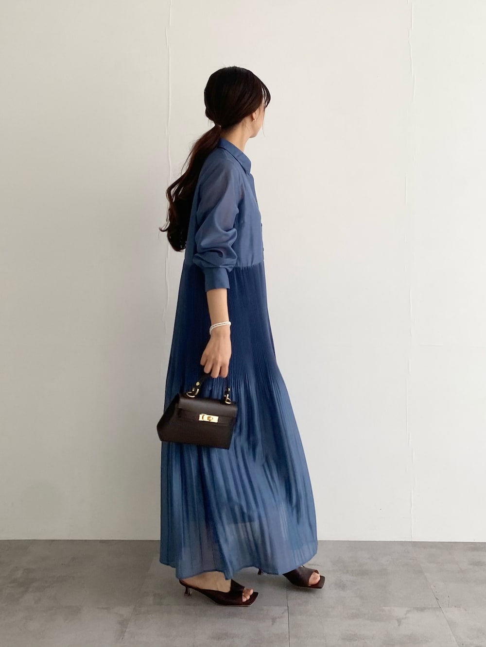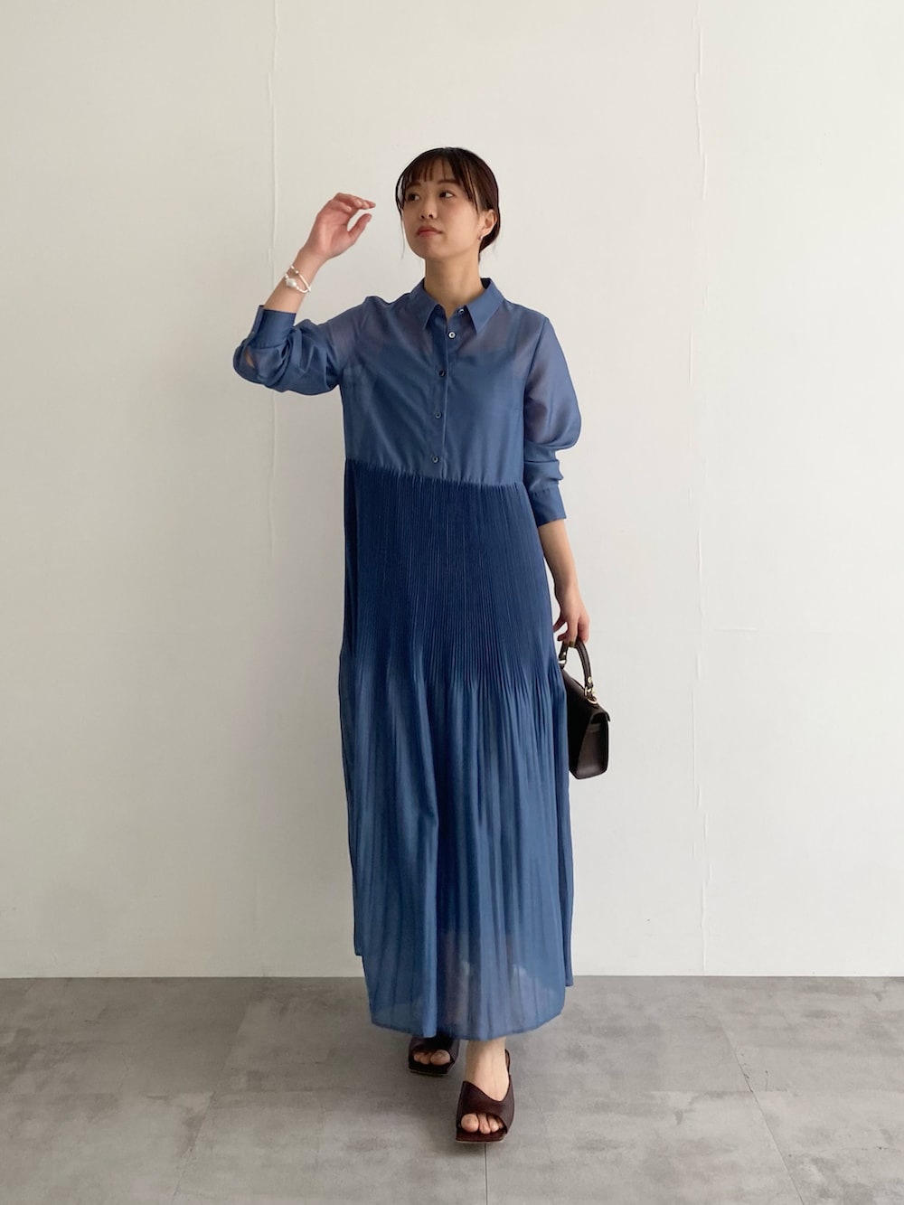 ウエストからヒップにかけて細かいプリーツが施されたワンピース