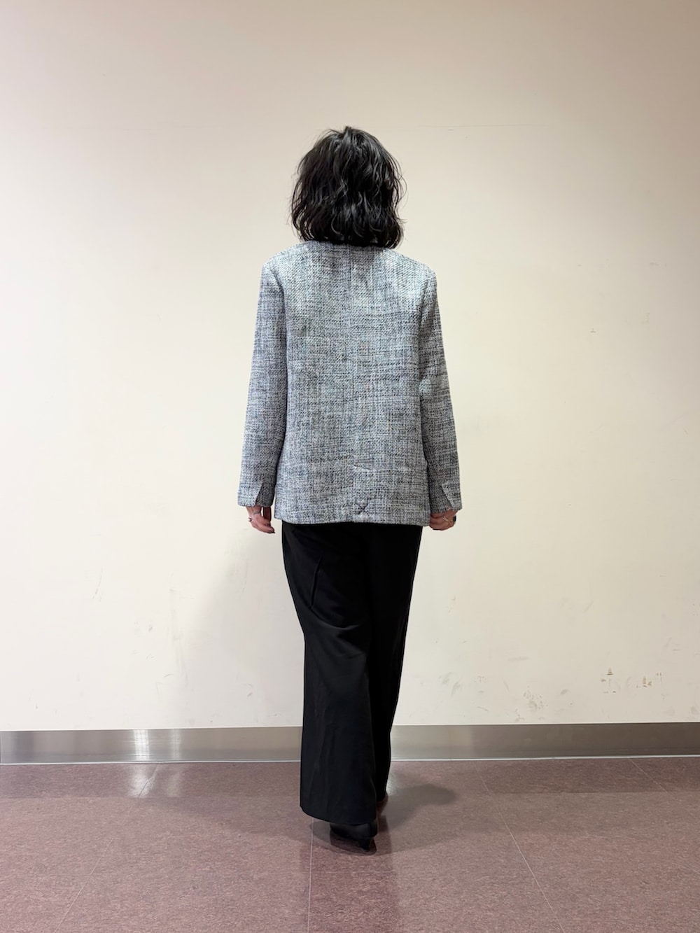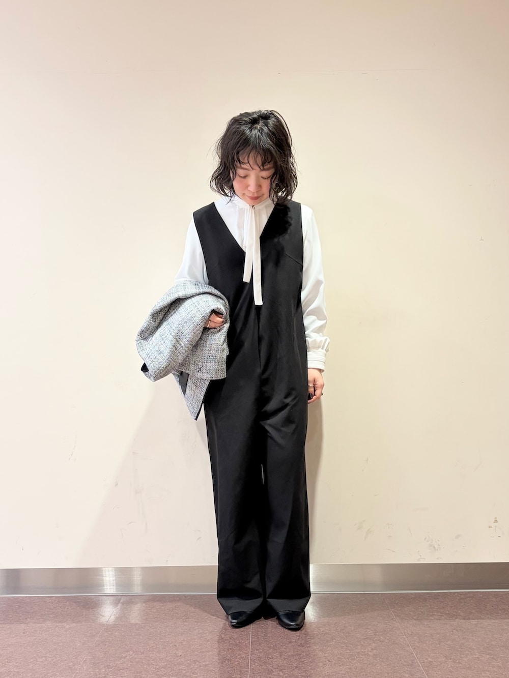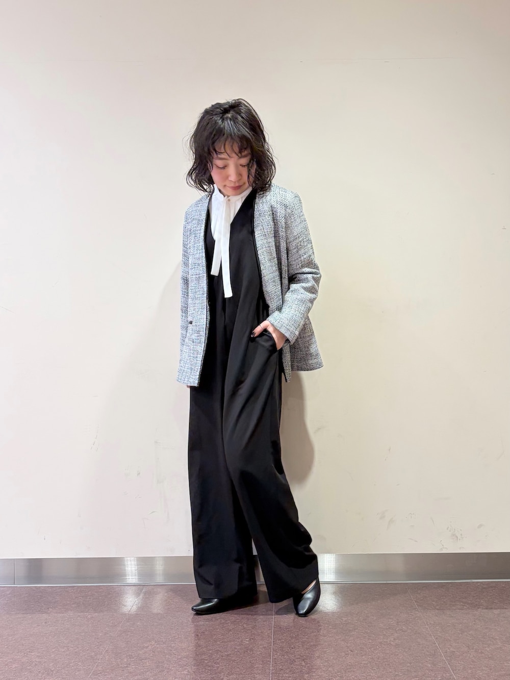 オールインワンに、ツイードのジャケット