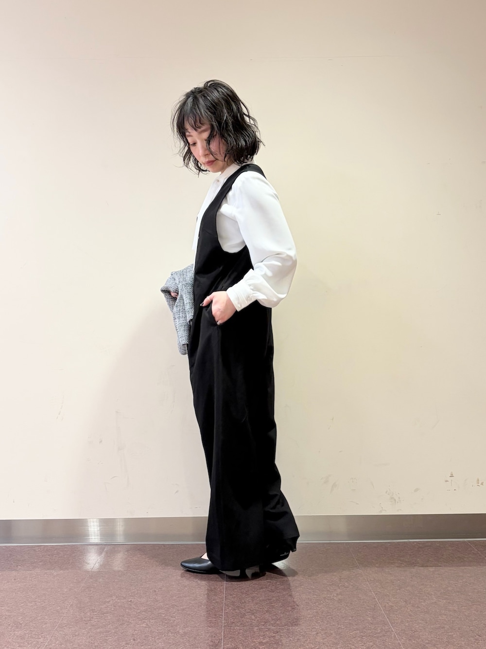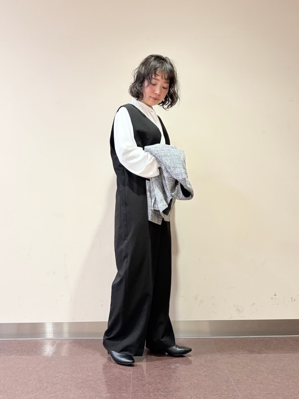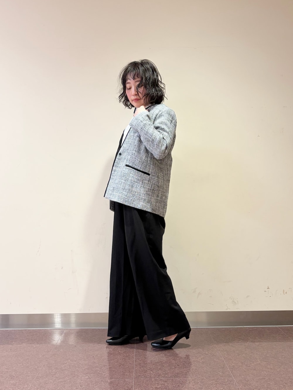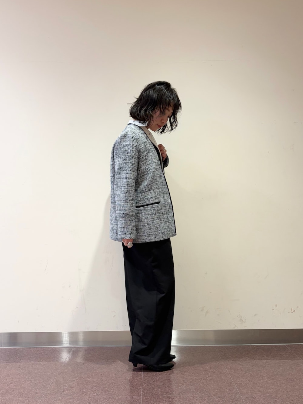 オールインワンに、ツイードのジャケット