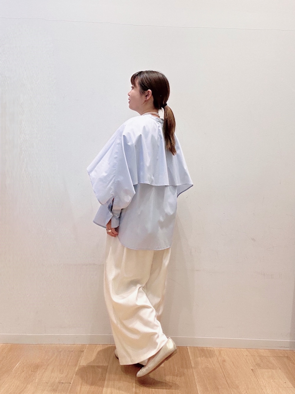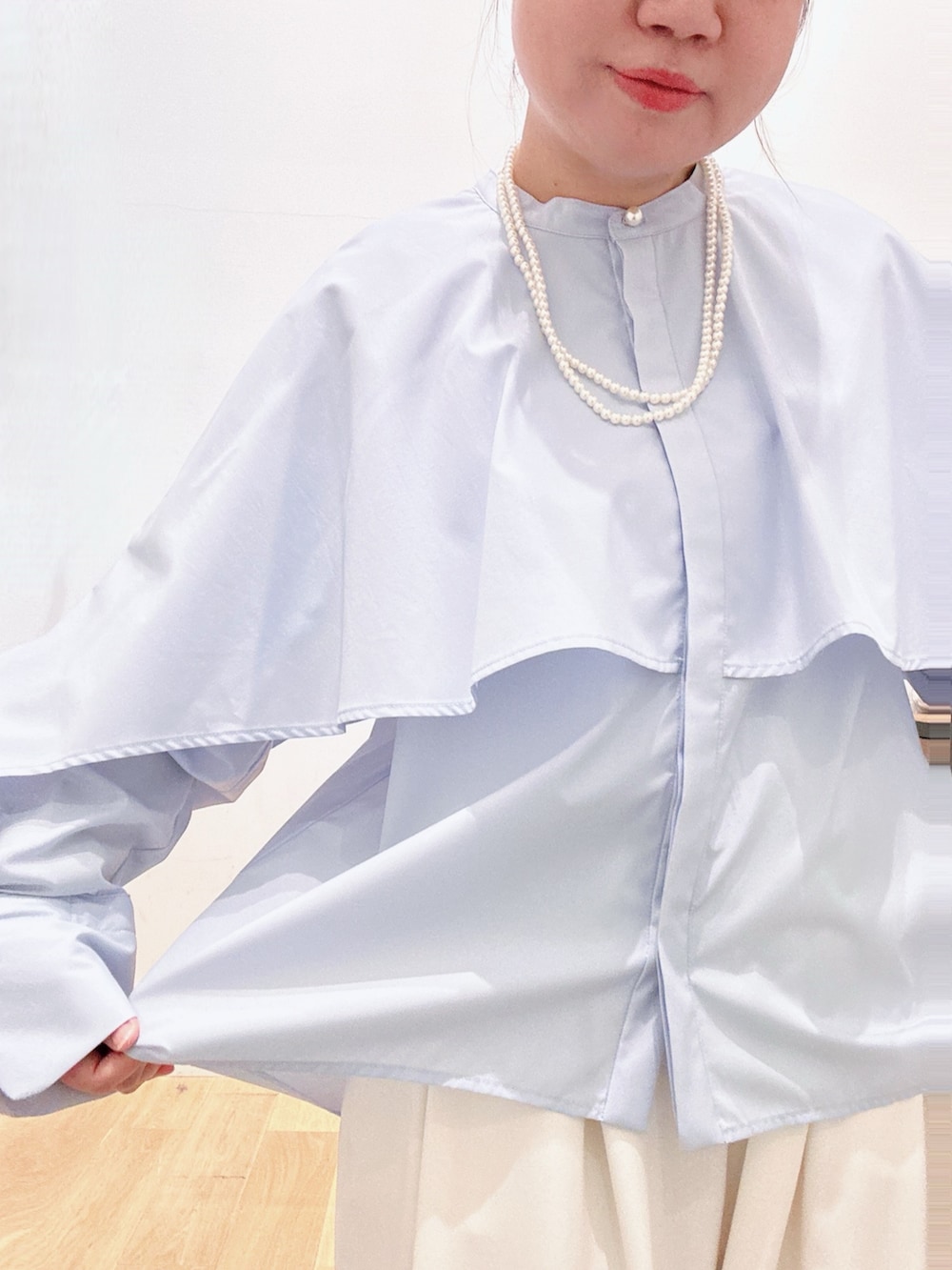 ジャケットを羽織ってもごわつかない光沢感のある生地です🟦❣️
