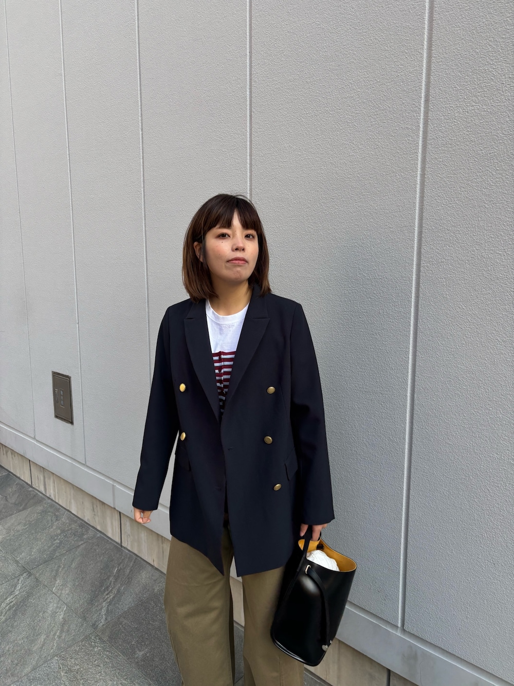 パンツは他のスタイリンクでも度々登場しているヘリンボーンのワイドスラックス。