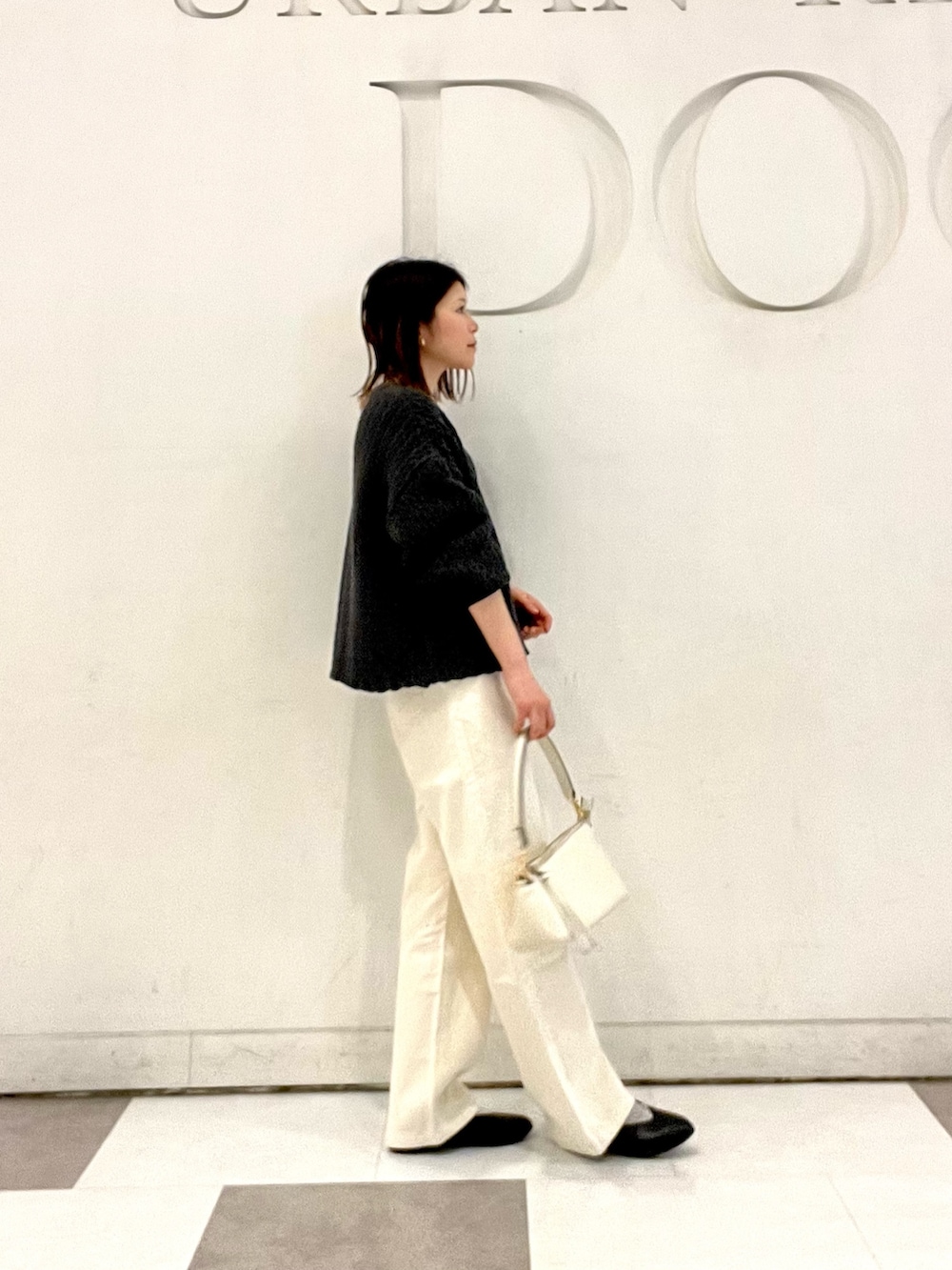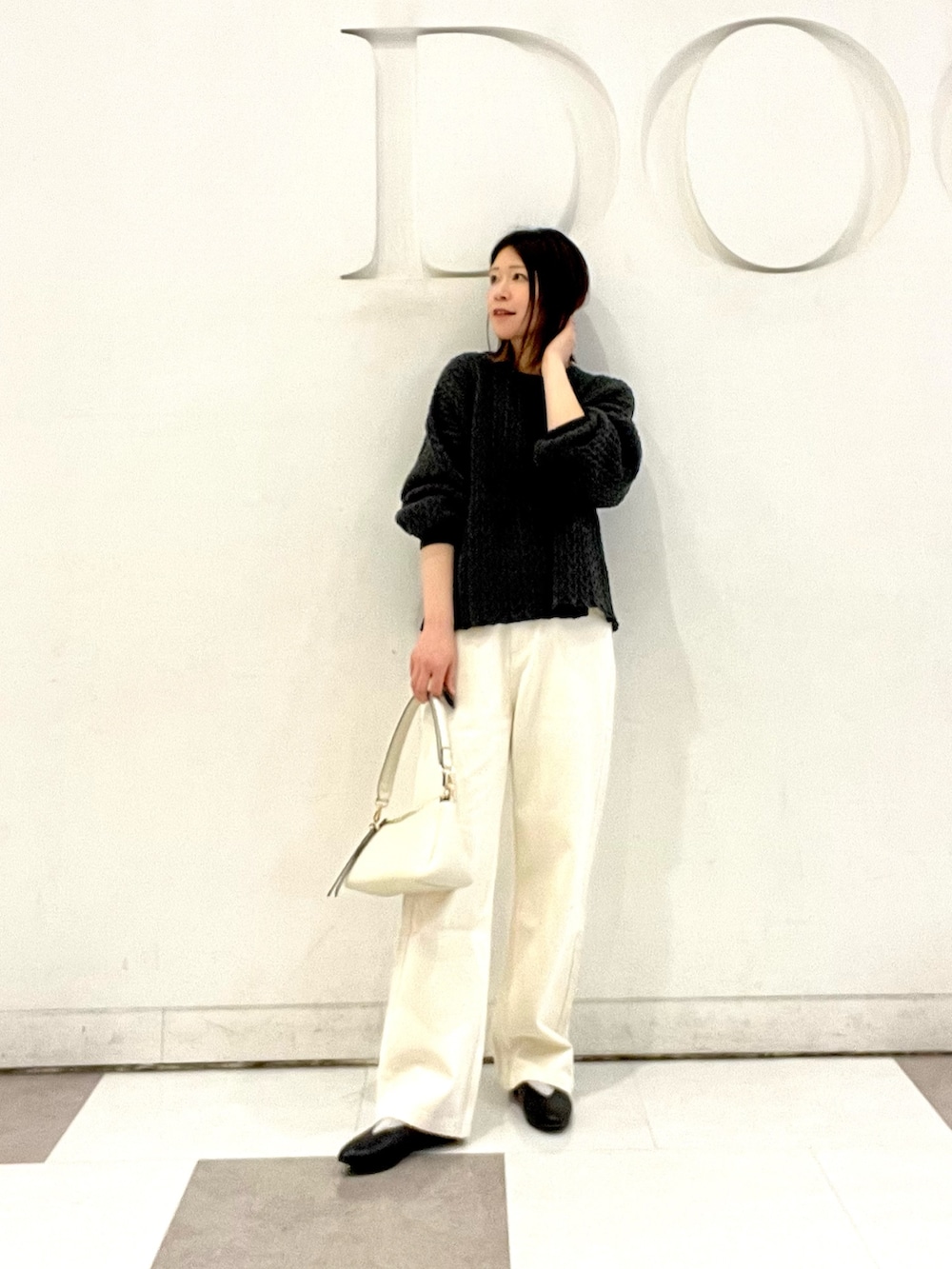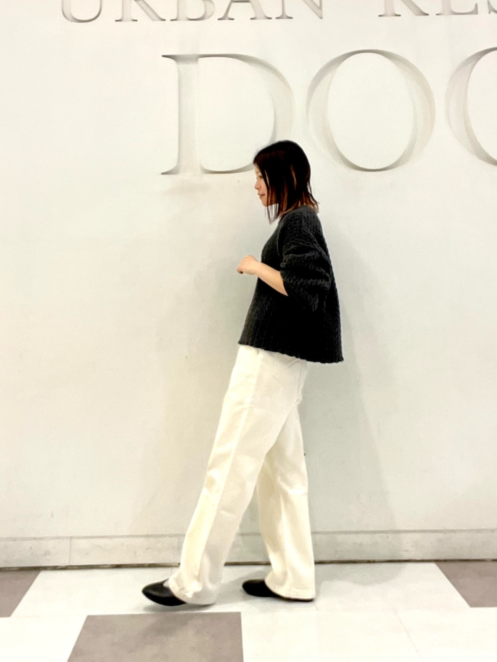 ヘリンボーン柄のニットは袖にたっぷりとボリュームのあるデザインが可愛いです🧶短めな着丈なのでカットソーやシャツをレイヤードさせるのもオススメです◎