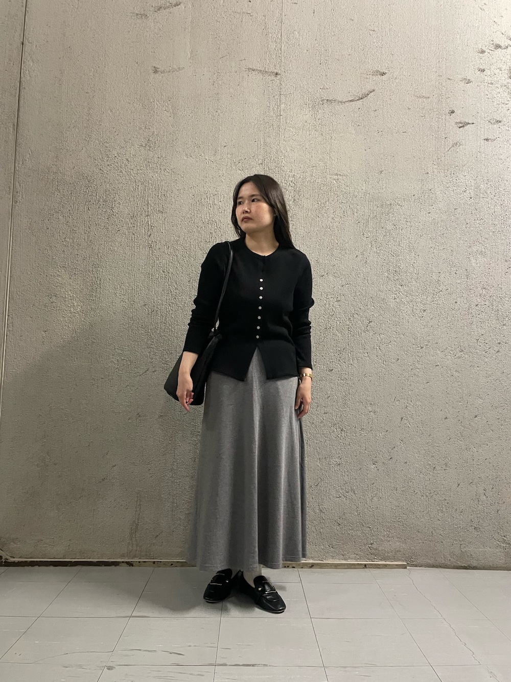 いつもご覧いただきありがとうございます。ボトムスに重厚感のあるワイドデニムを合わせることで、どっしりとした安定感のあるシルエットを作っています。トップスの裾を絞ることで、上半身にボリュームを持たせつつ、全体がルーズになりすぎないようにしてみました!