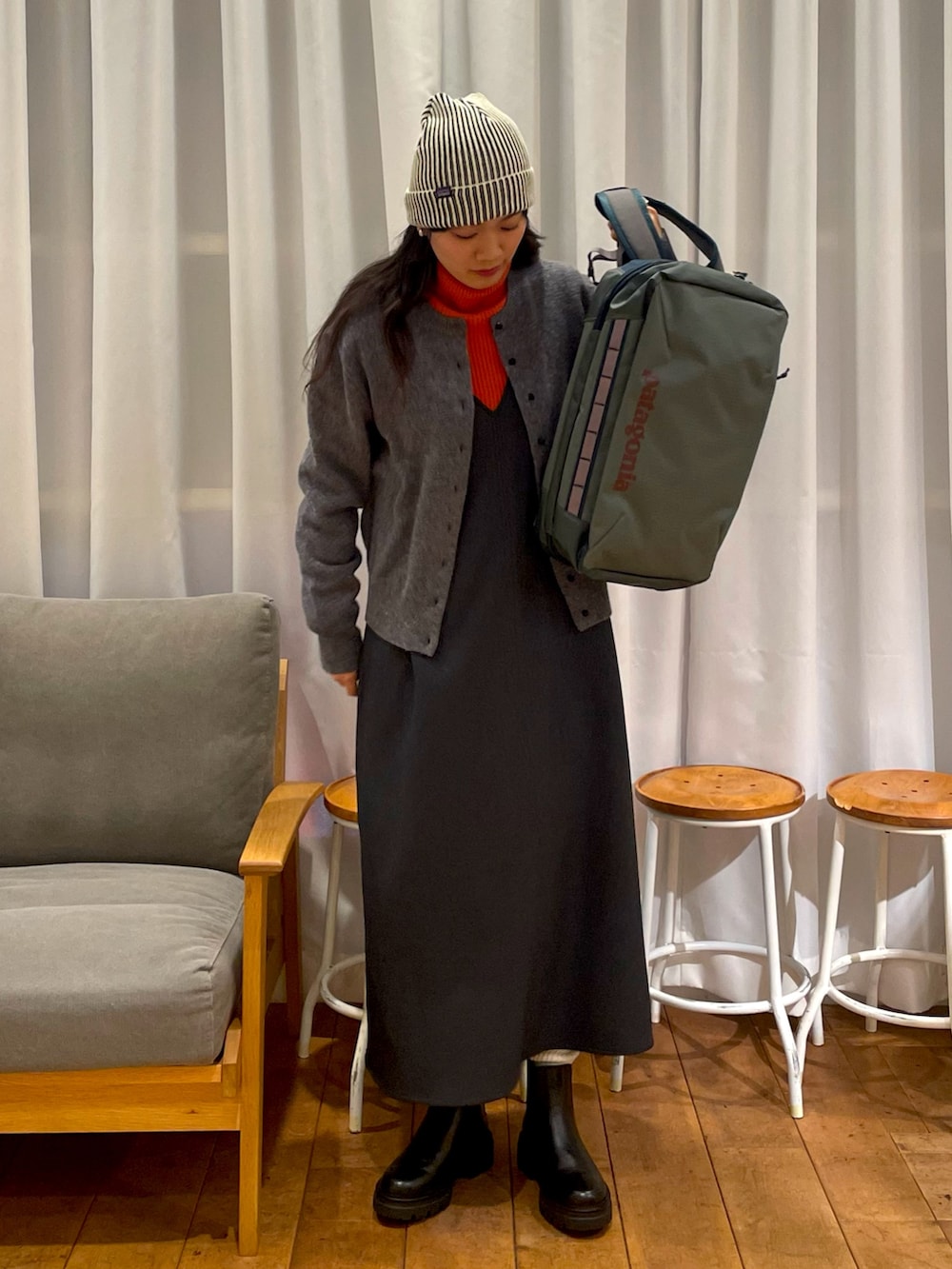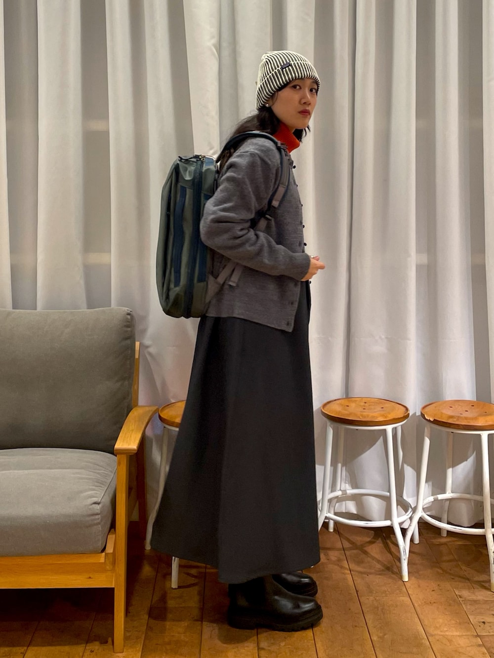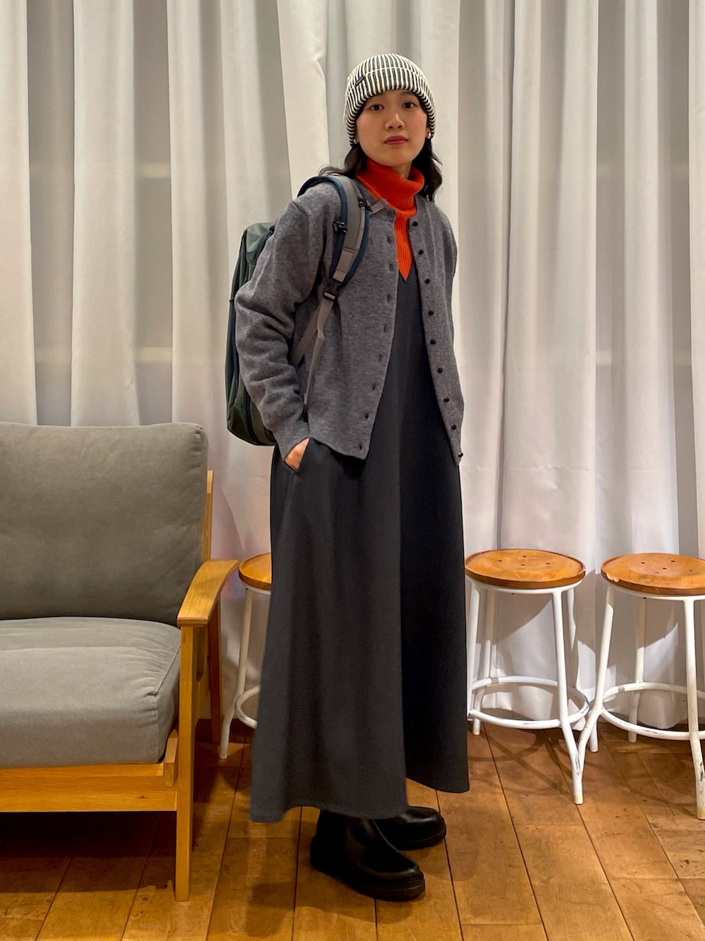 少しリュックやビーニーでカジュアルさをプラスしました🎒❄️
