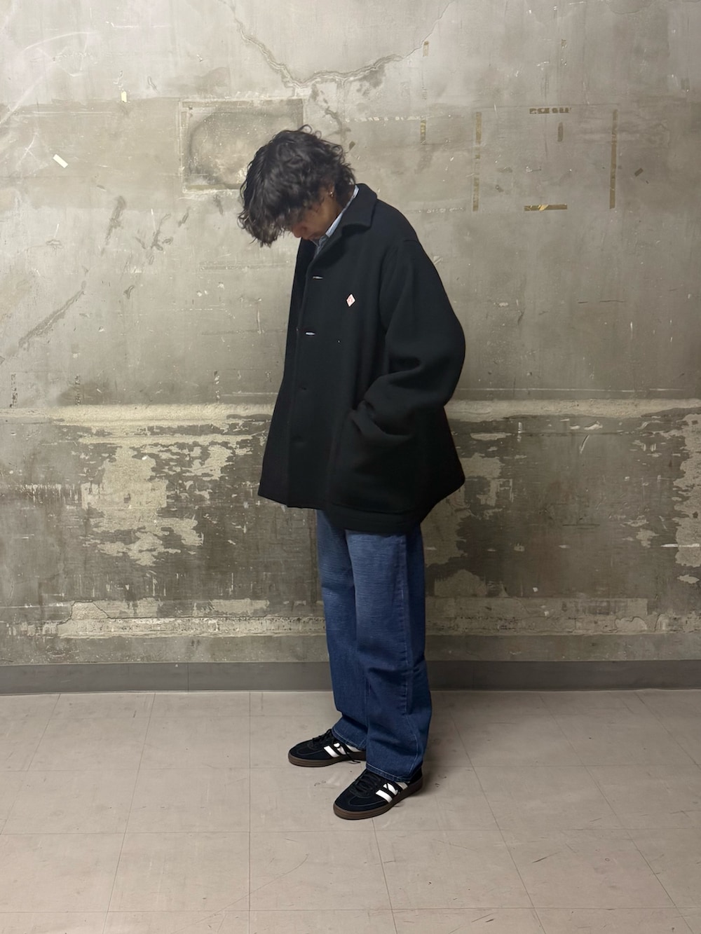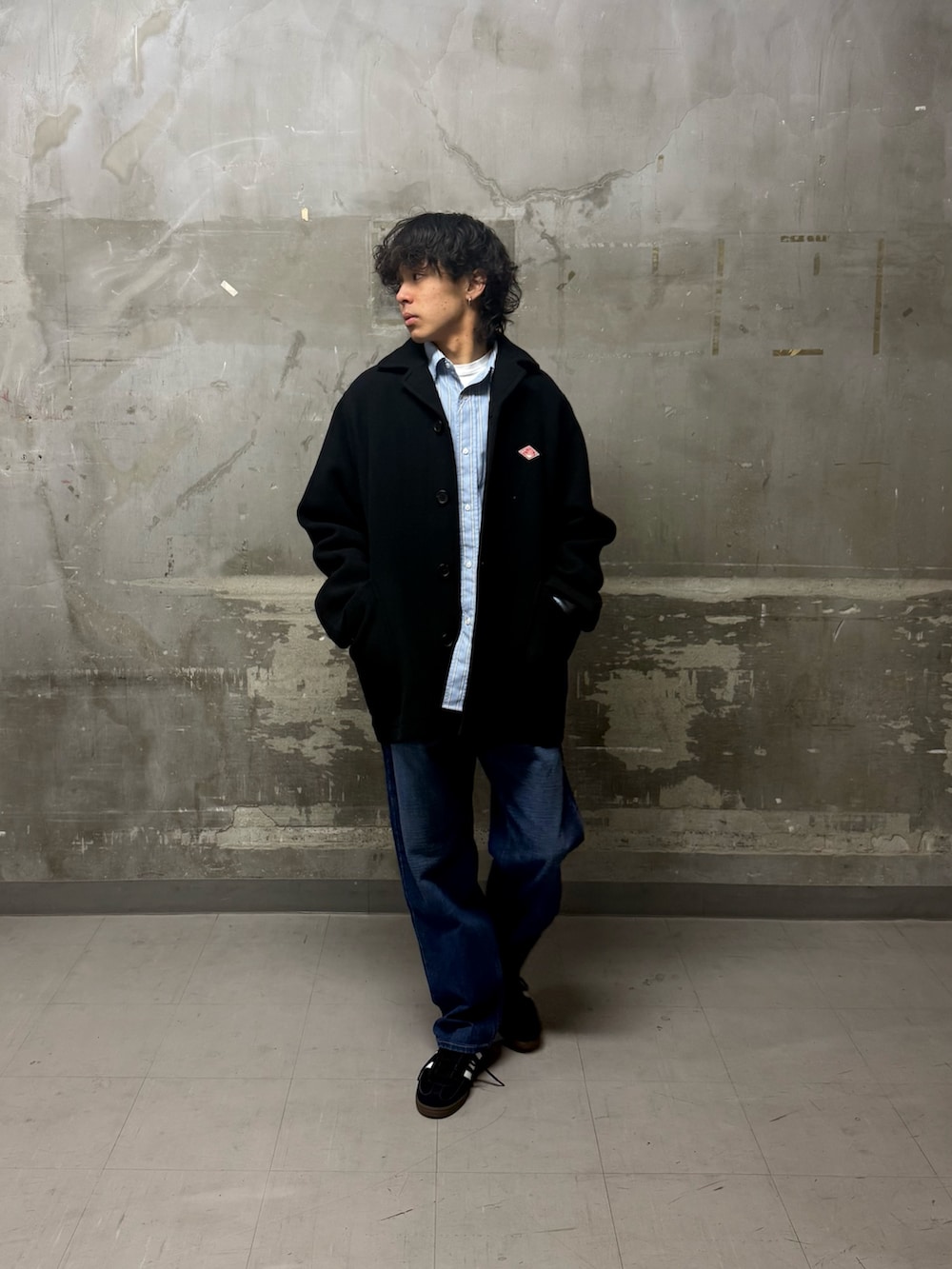 いつもご覧いただきありがとうございます!上半身にボリュームのあるコート、下半身にストンと落ちるワイドデニムを合わせることで、安定感のあるシルエットを構築してみました!