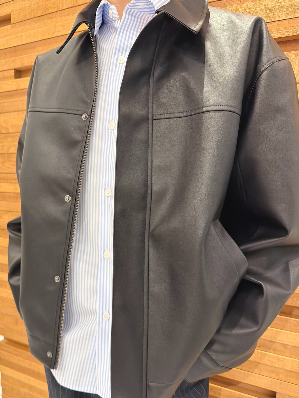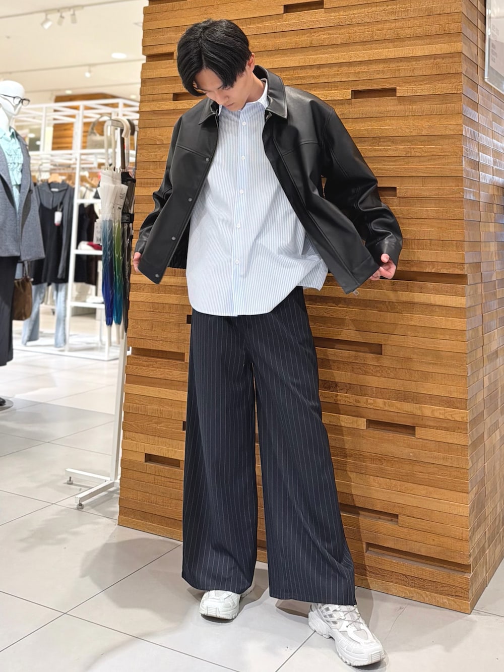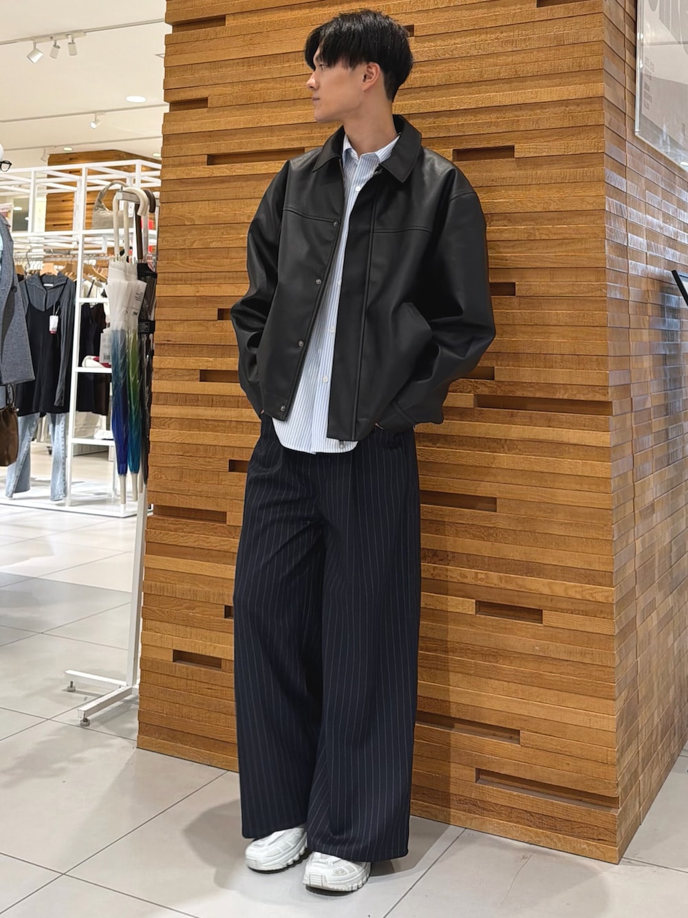 コーデの締めにレザーブルゾンを羽織ってカッコよくまとめたら完成です!寒すぎもせず、暑すぎもしないので、お出かけコーデにぴったりです!