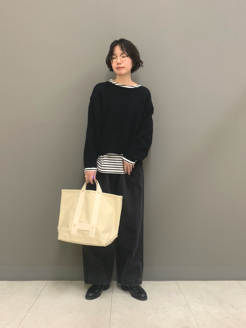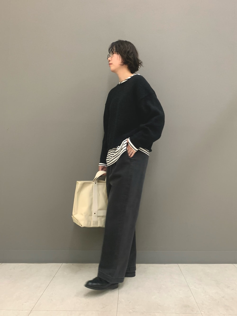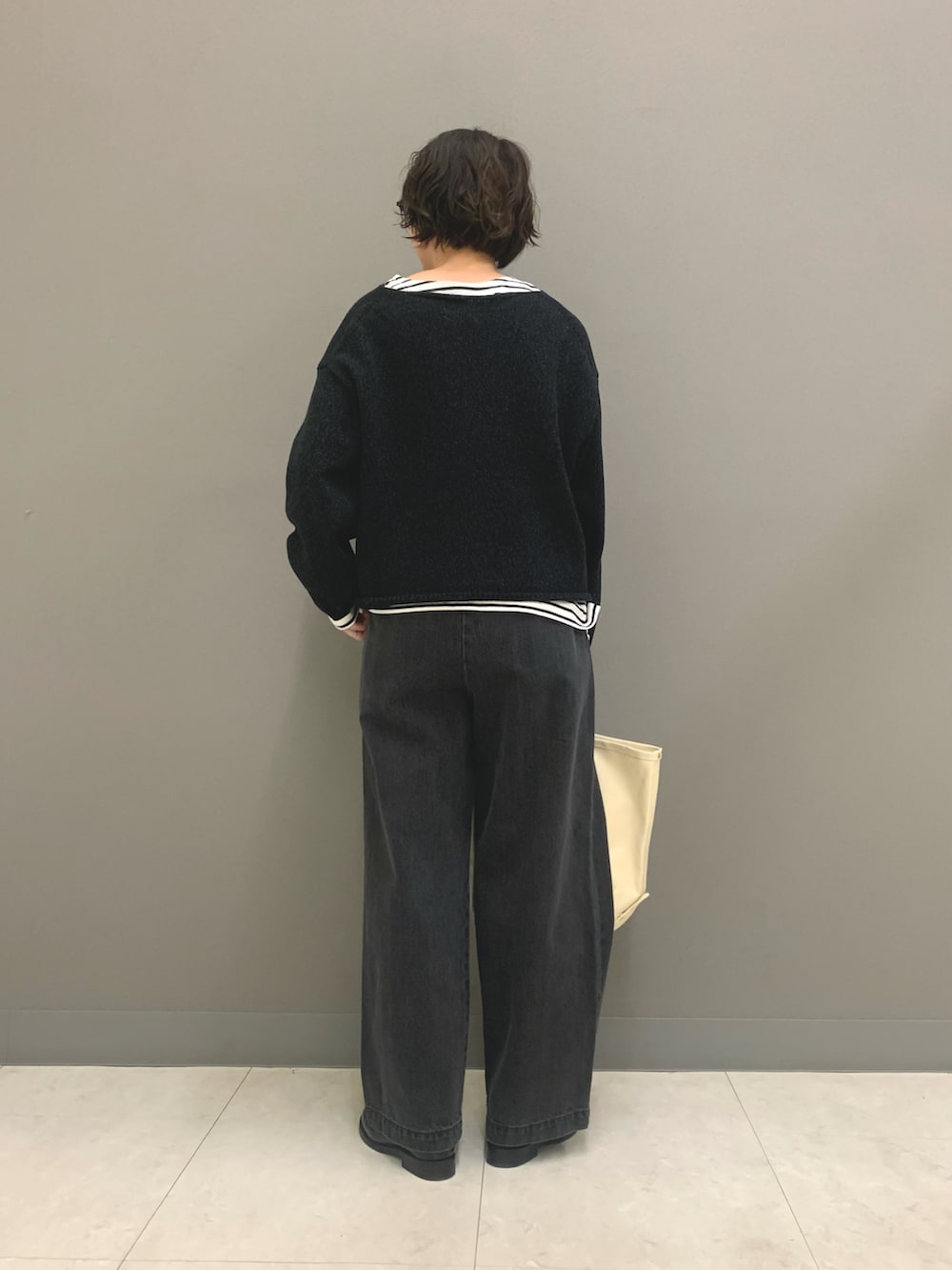 人気のフェードデニムのブラックカラーが再登場しました。太めな綺麗なシルエットとカジュアルすぎない色落ち加減がオトナなブラックデニムです。今回はモノトーンで合わせましたがカラーニットと合わせても落ち着いた印象になって使いやすいです。