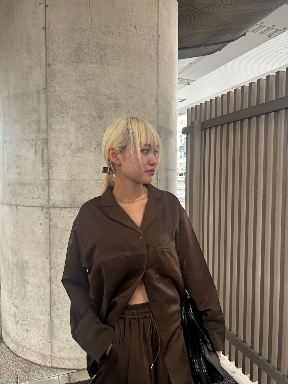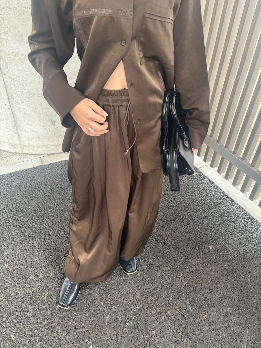 ルーズサテンシャツとサテンバルーンパンツのセットアップスタイルにしました!