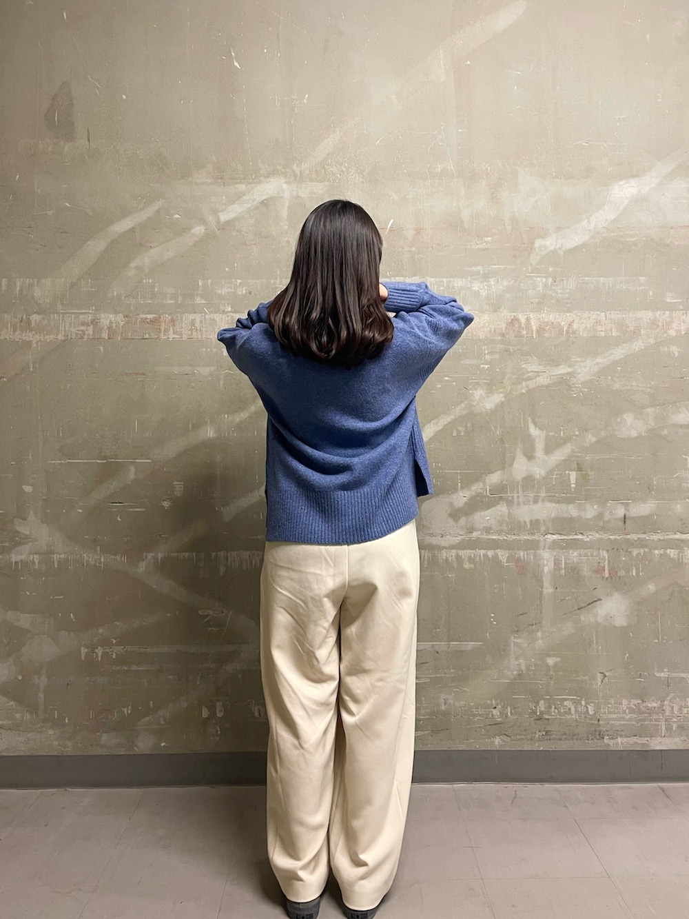 程よくゆとりのあるパンツはラインが綺麗で、オンオフ問わず活躍します。
