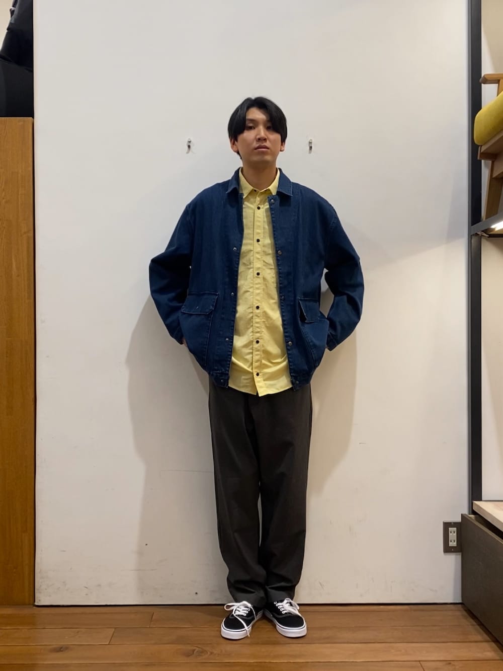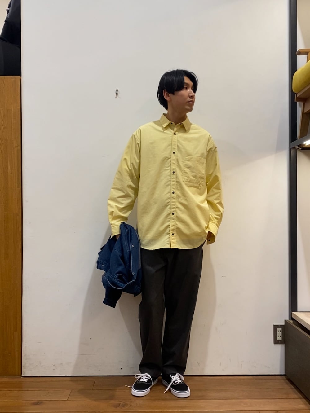 差し色に同じくEKALのイエローカラーのシャツを取り入れてみました!