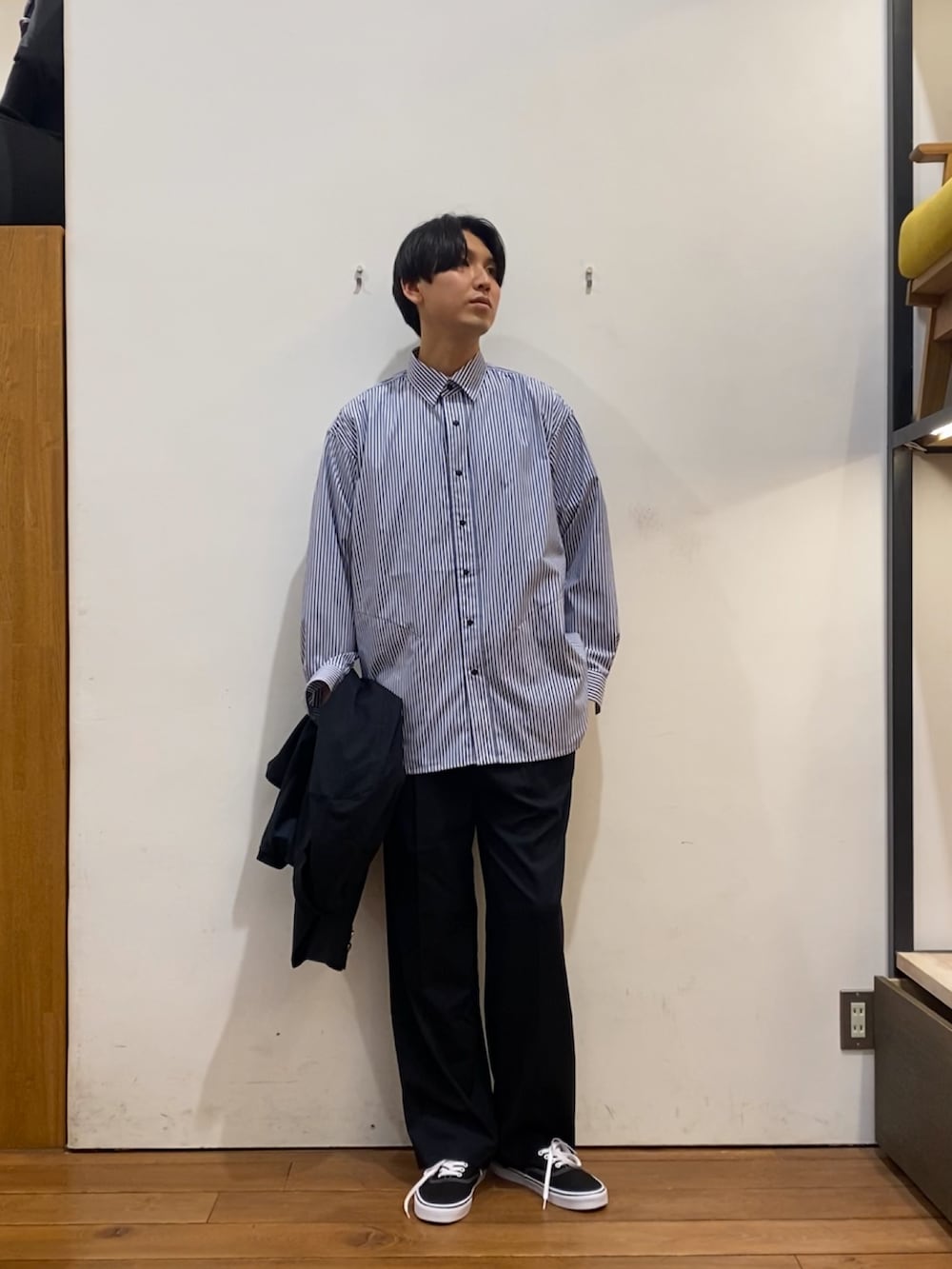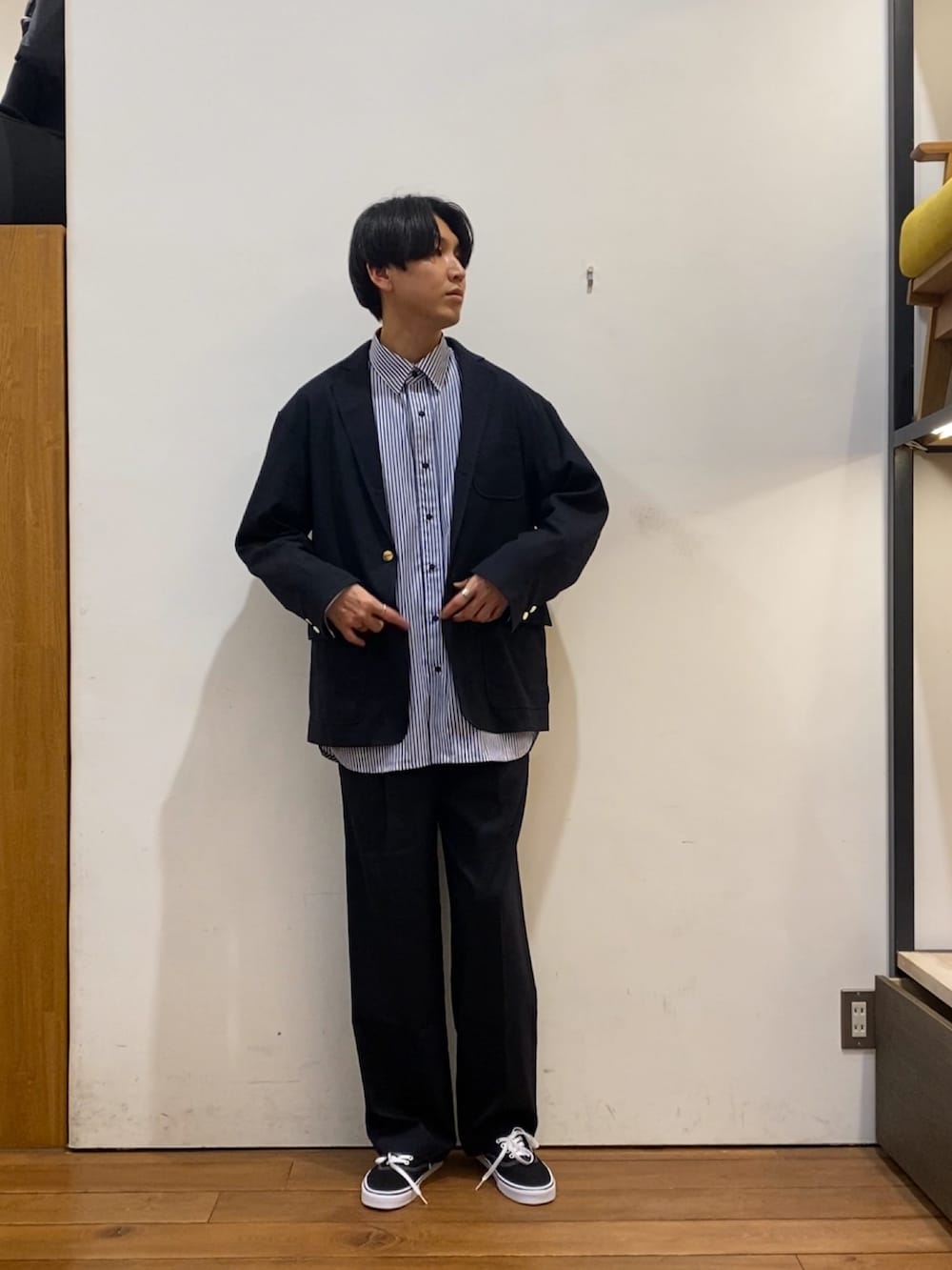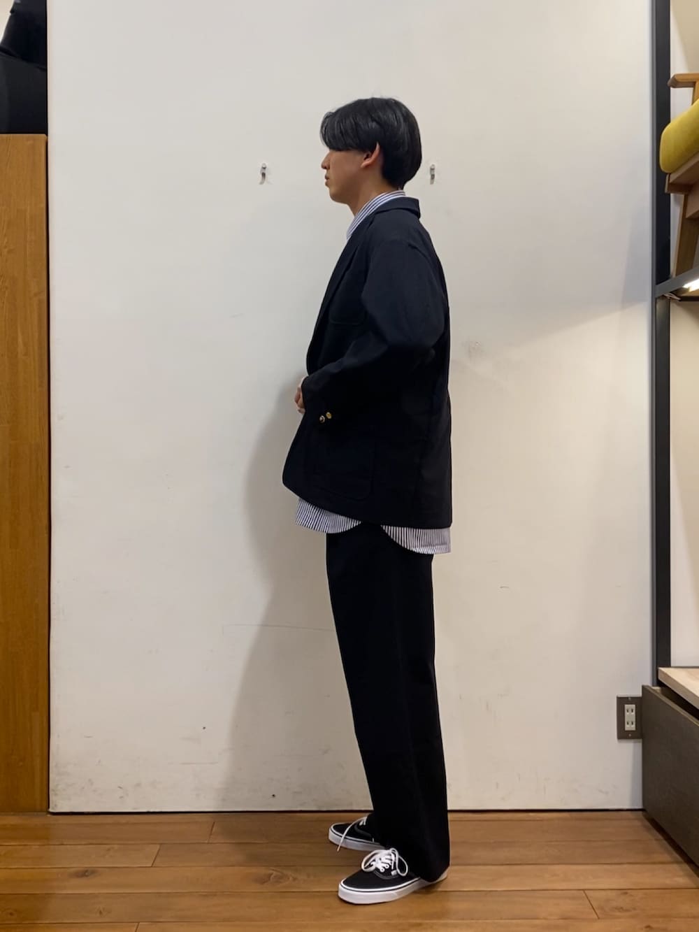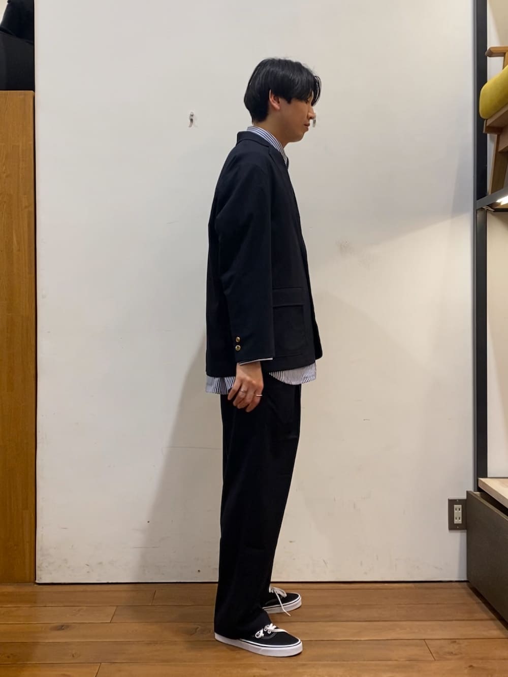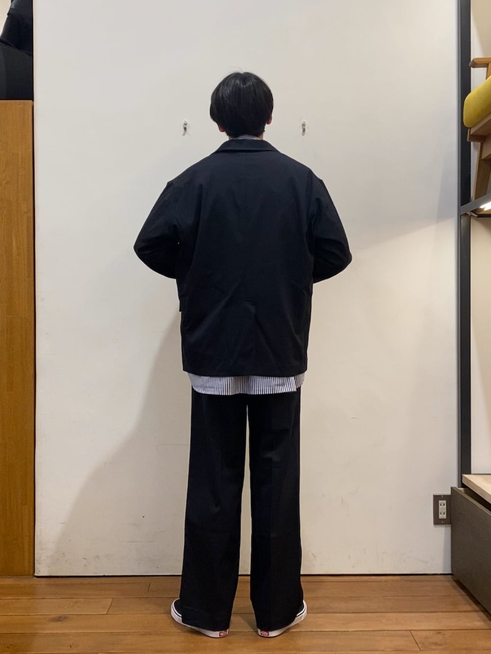 ジャケットと同素材のパンツは、程よくゆとりをもたせつつも、センタープレスを入れすっきりとしていて上品にコーディネートを組んでくれます!