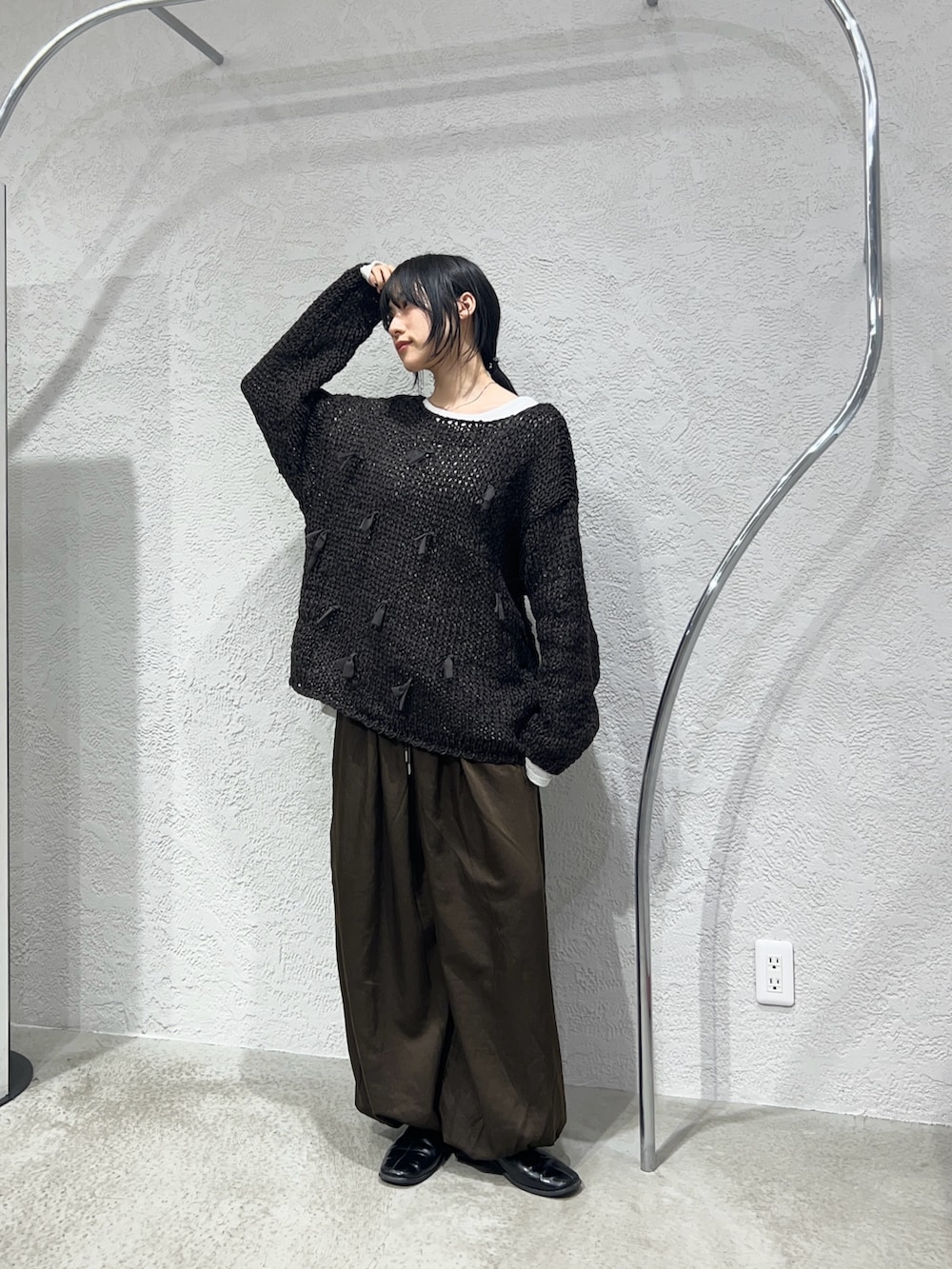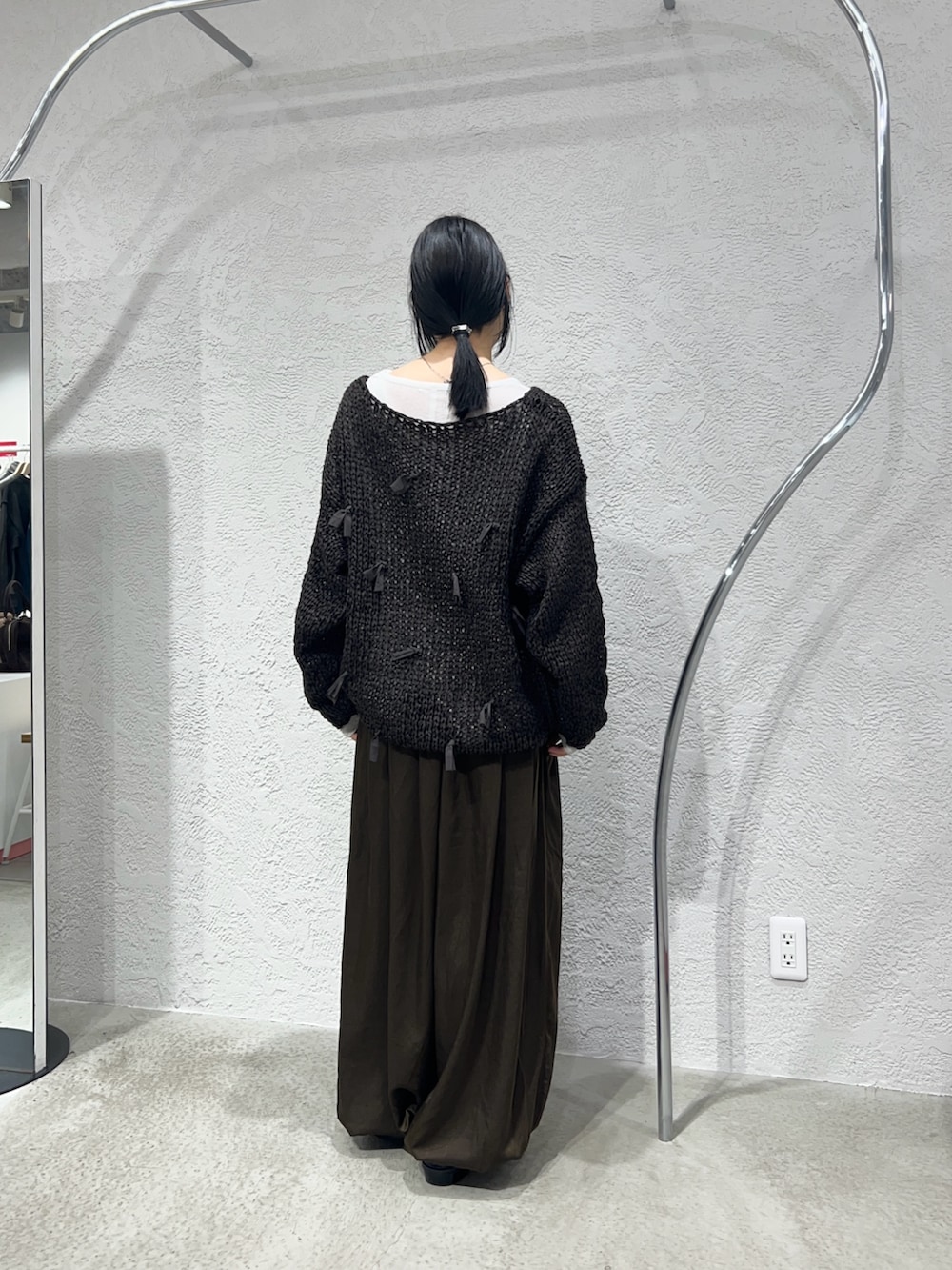 リボンのオーバーニットに、サテンバルーンパンツを合わせて、ワントーンコーデで着てみました!
