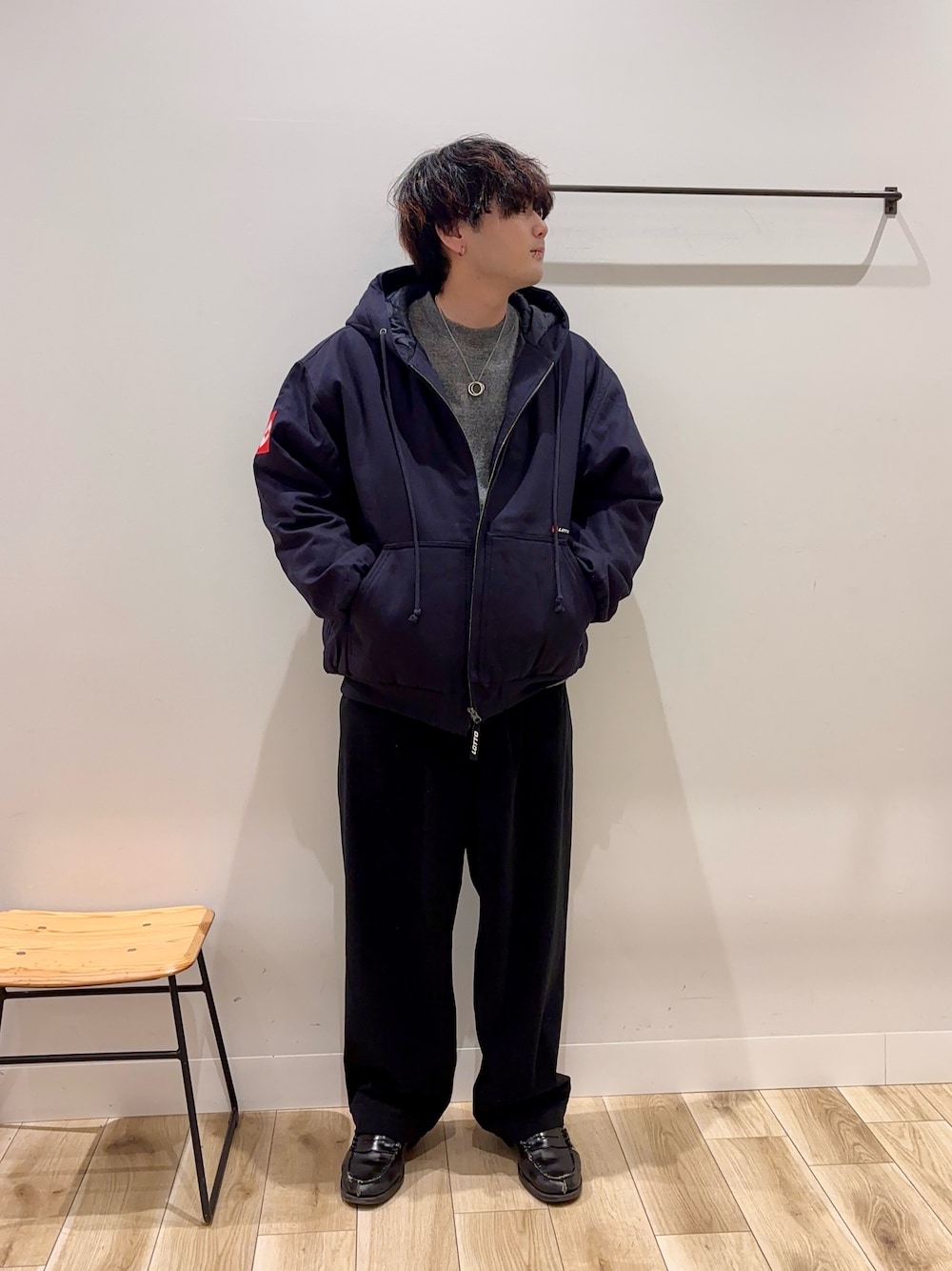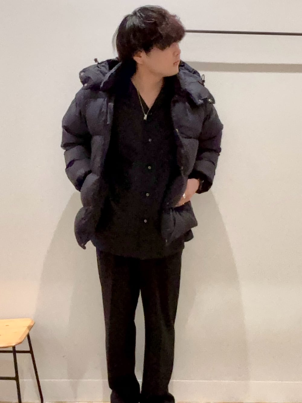 開襟シャツとダウンジャケットの合わせ結構いいかも🤔