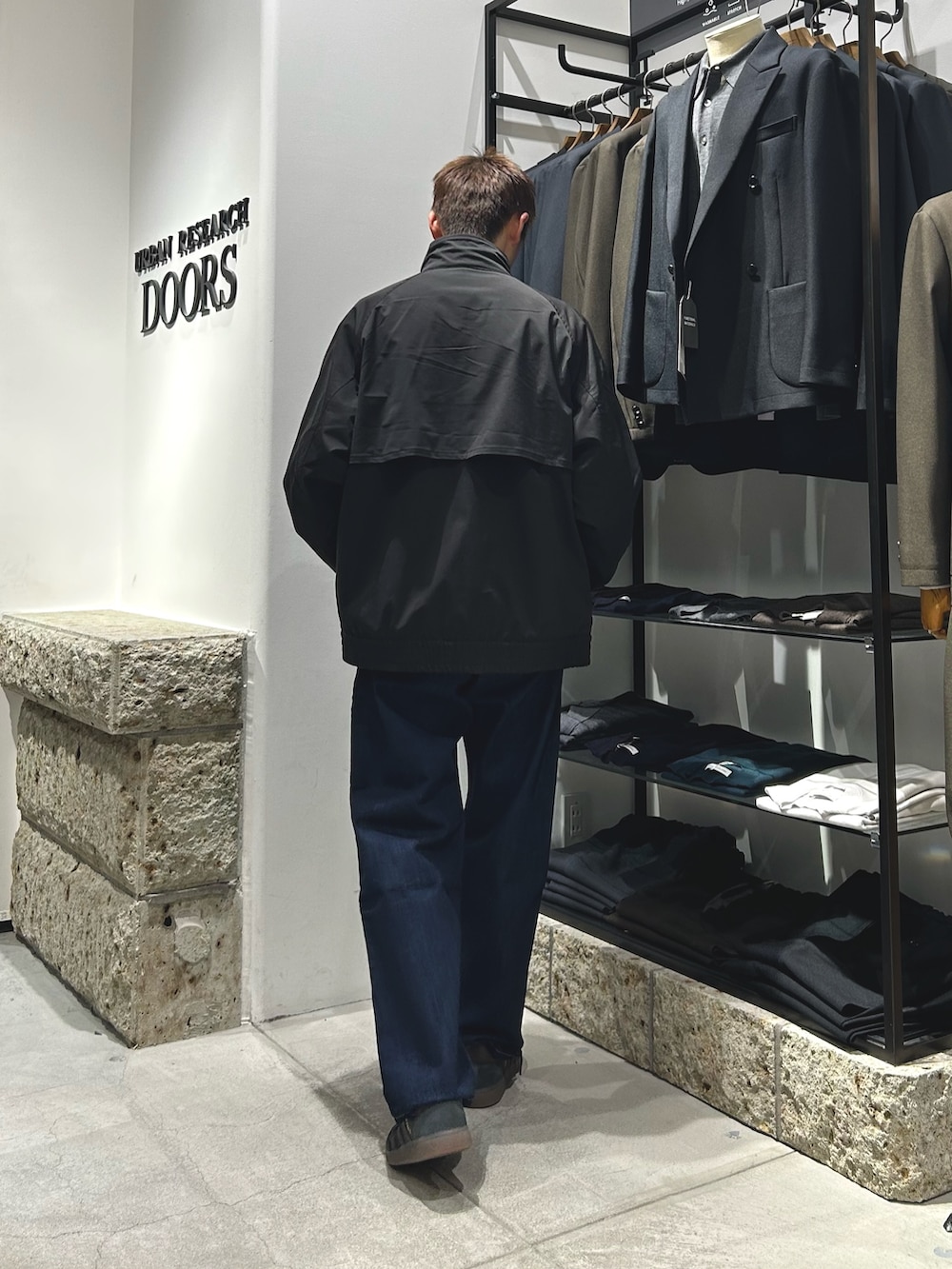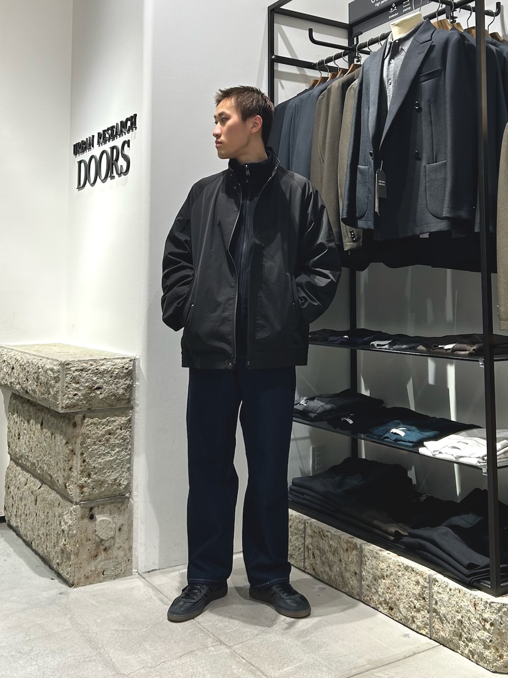 重く退屈になりがちな冬の黒ですが、フリースのジャケットにツイルジャケットを重ねることで素材のメリハリをつけています。