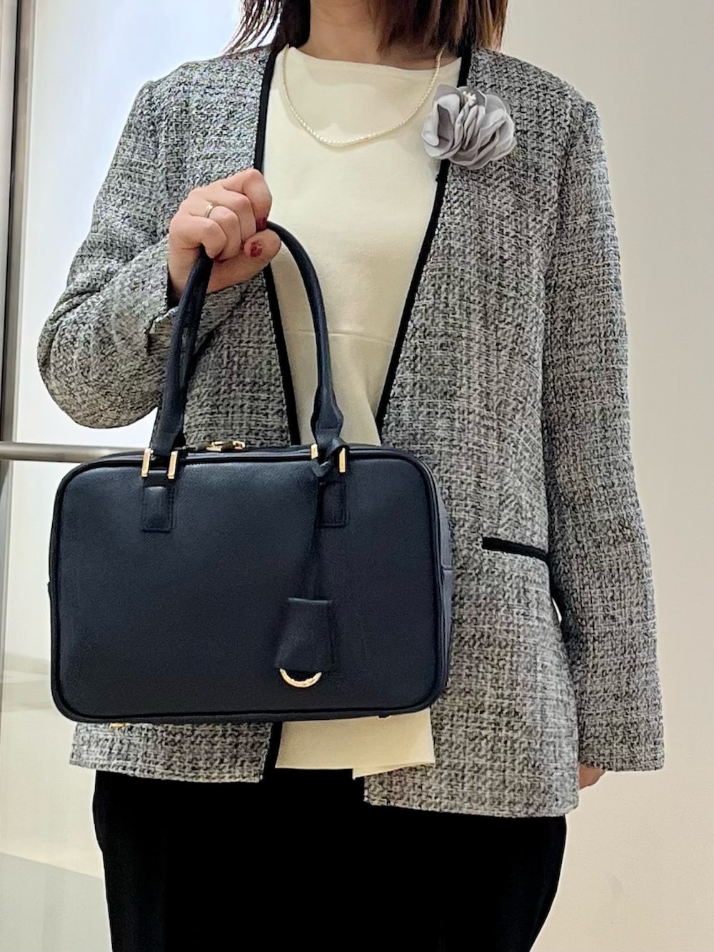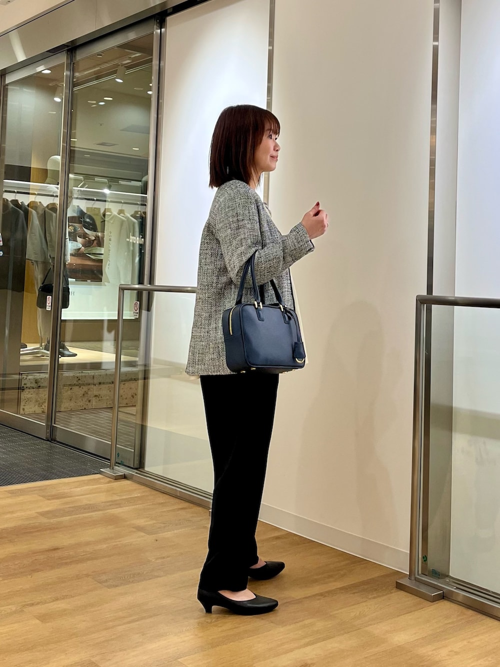 定番で流行りのないツイードジャケットは丈が少し長めでパンツでもスカートでも合わせやすいです。
