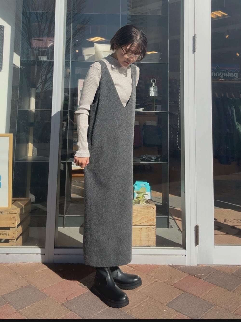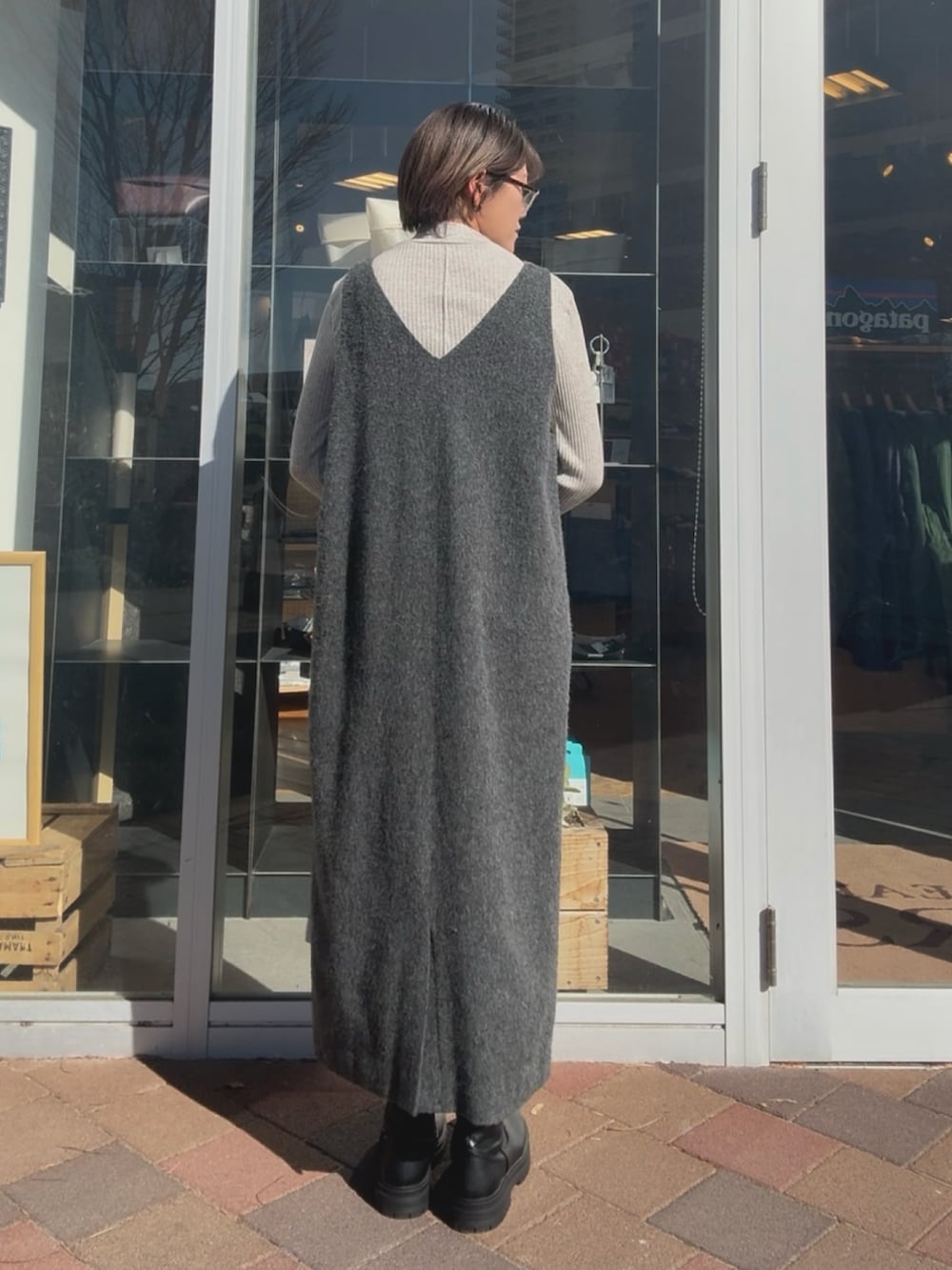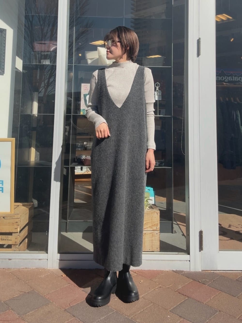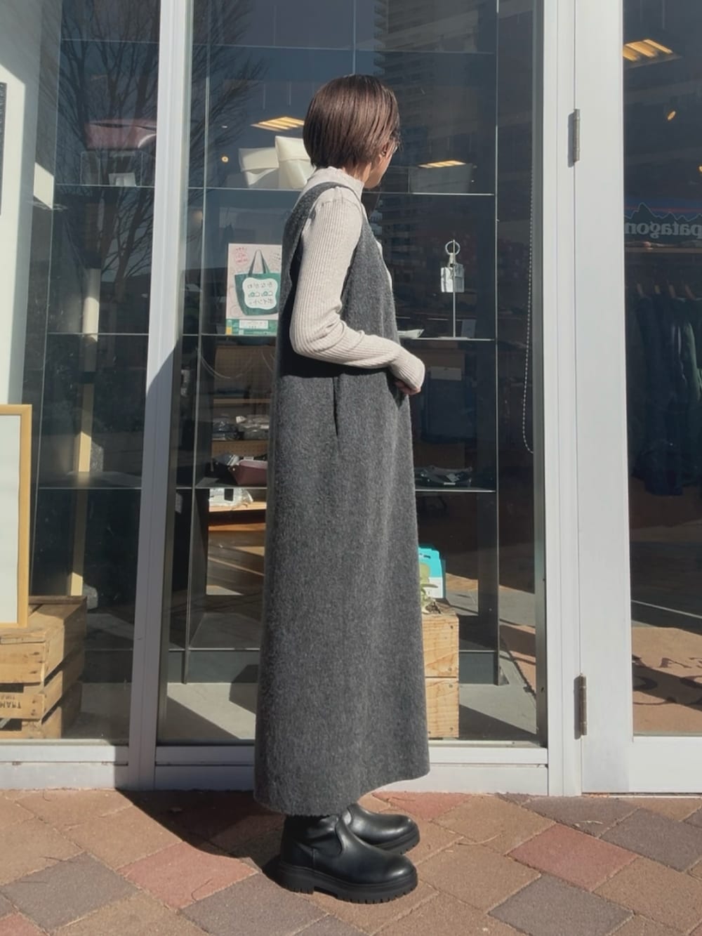 ゆったりとしたサイズ感でトップスは少し厚みのあるものでも合わせやすいです。