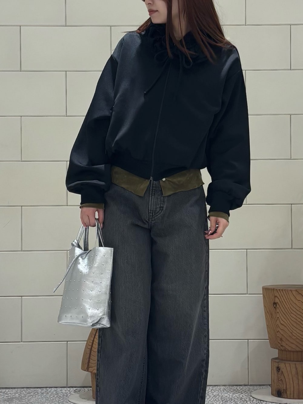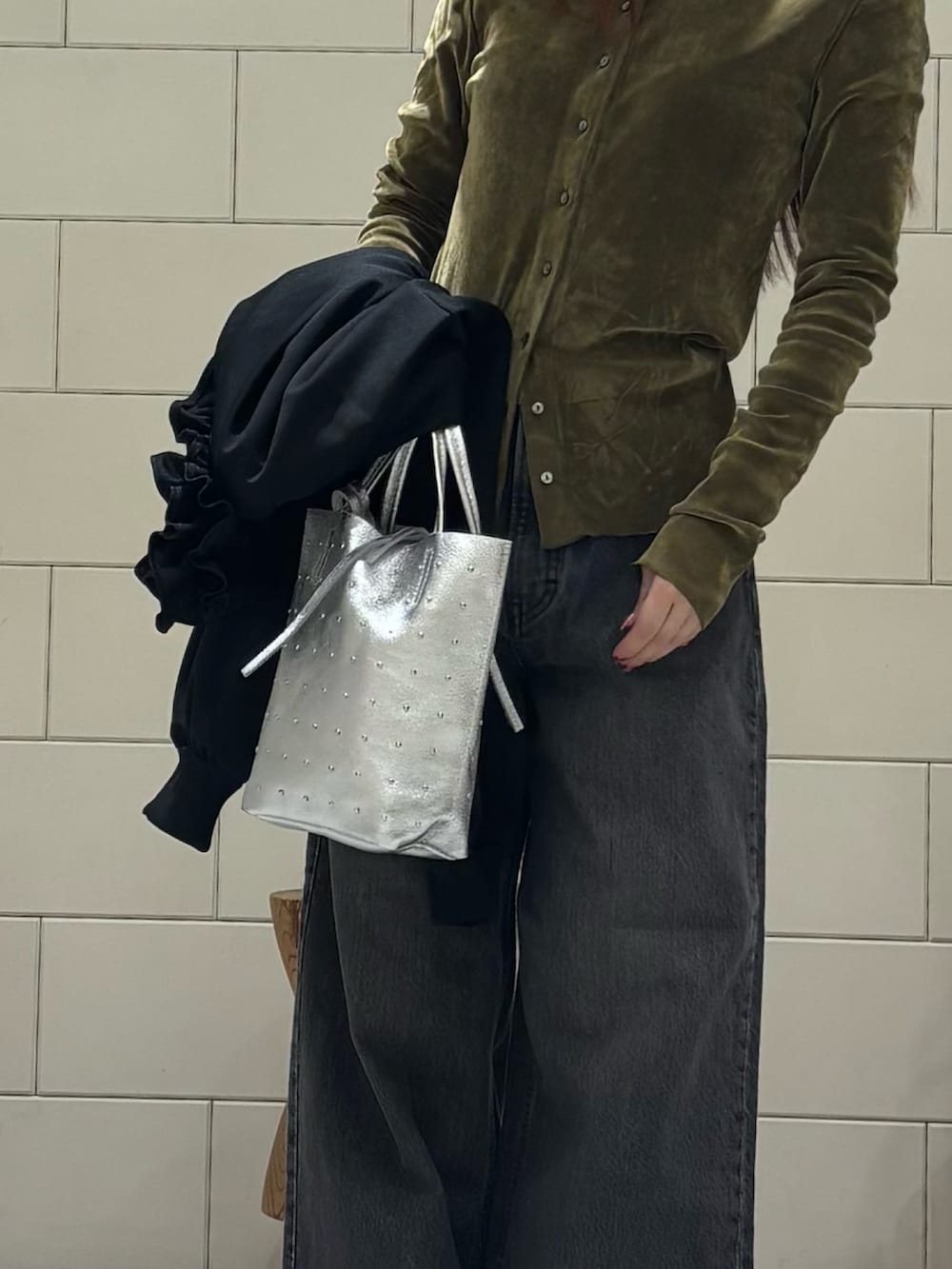 スタッズが可愛い2WAYシルバーバッグです。主役になるデザインで、普段使いに大活躍のサイズ感です。