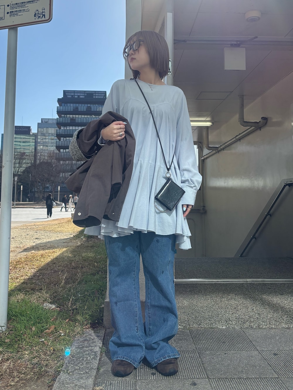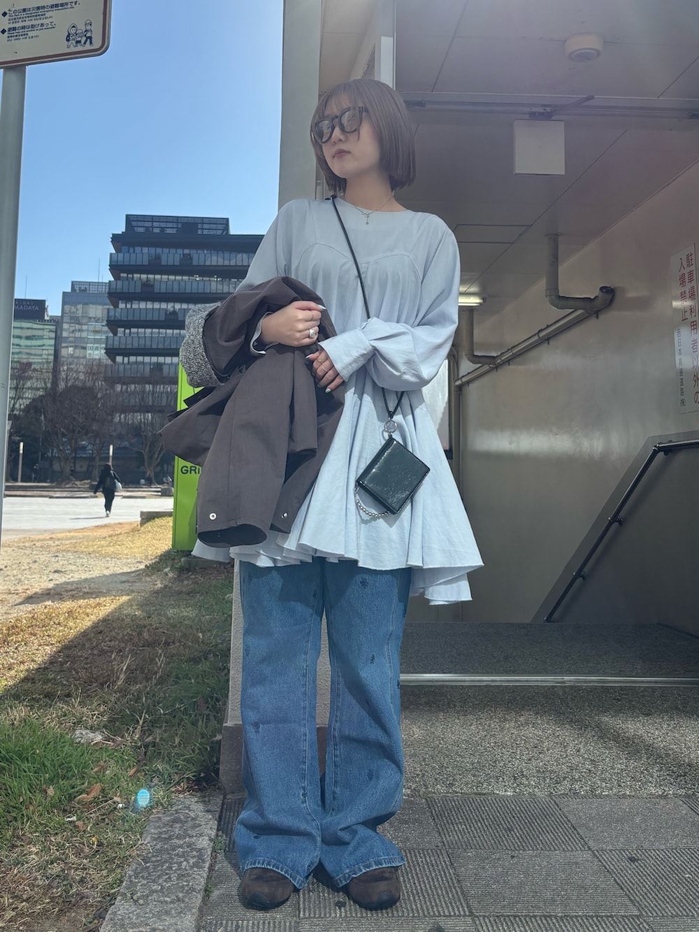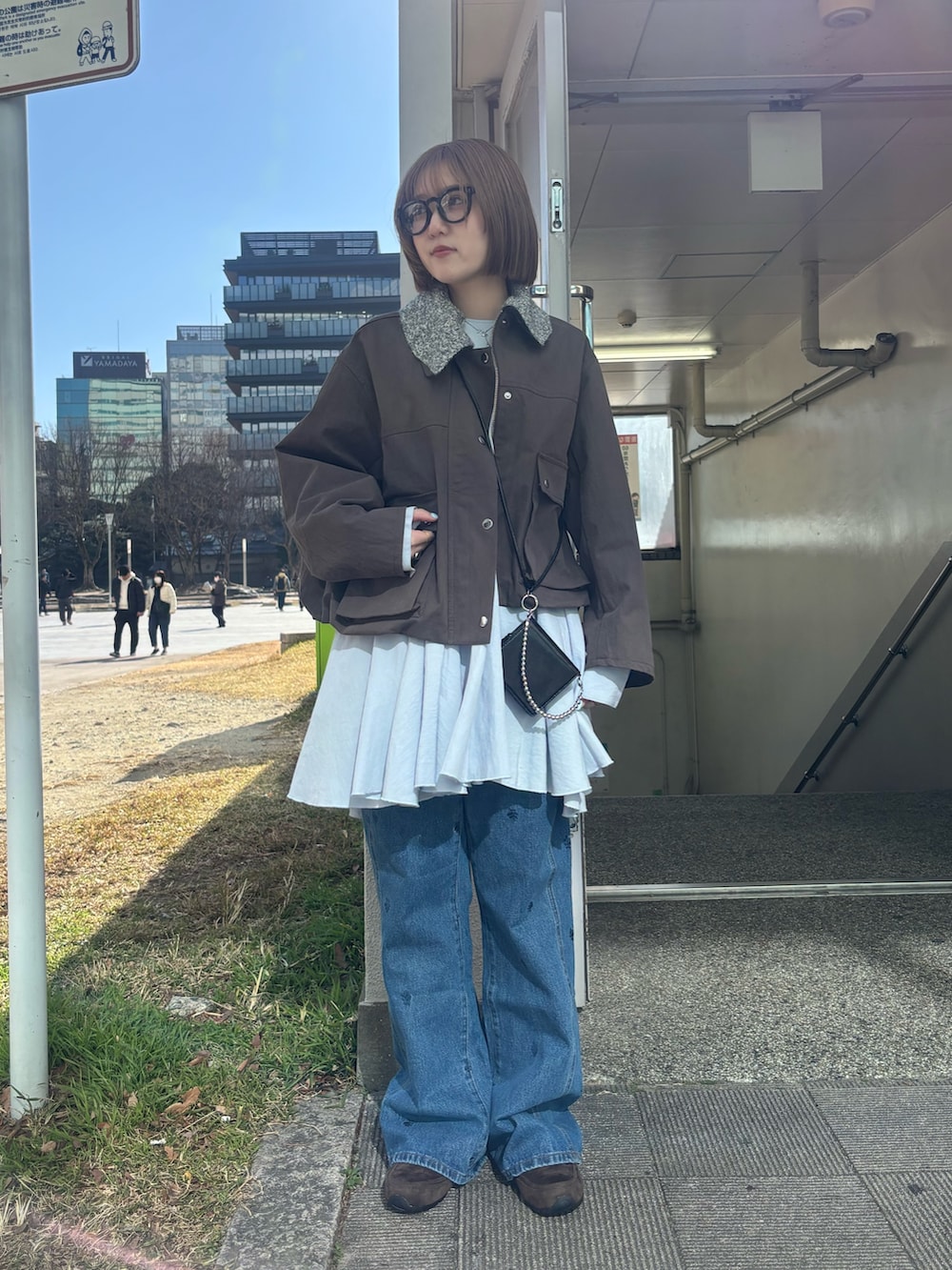 女性らしくなりすぎないようにブルゾンとジーンズでメンズライクも取り入れました👓
