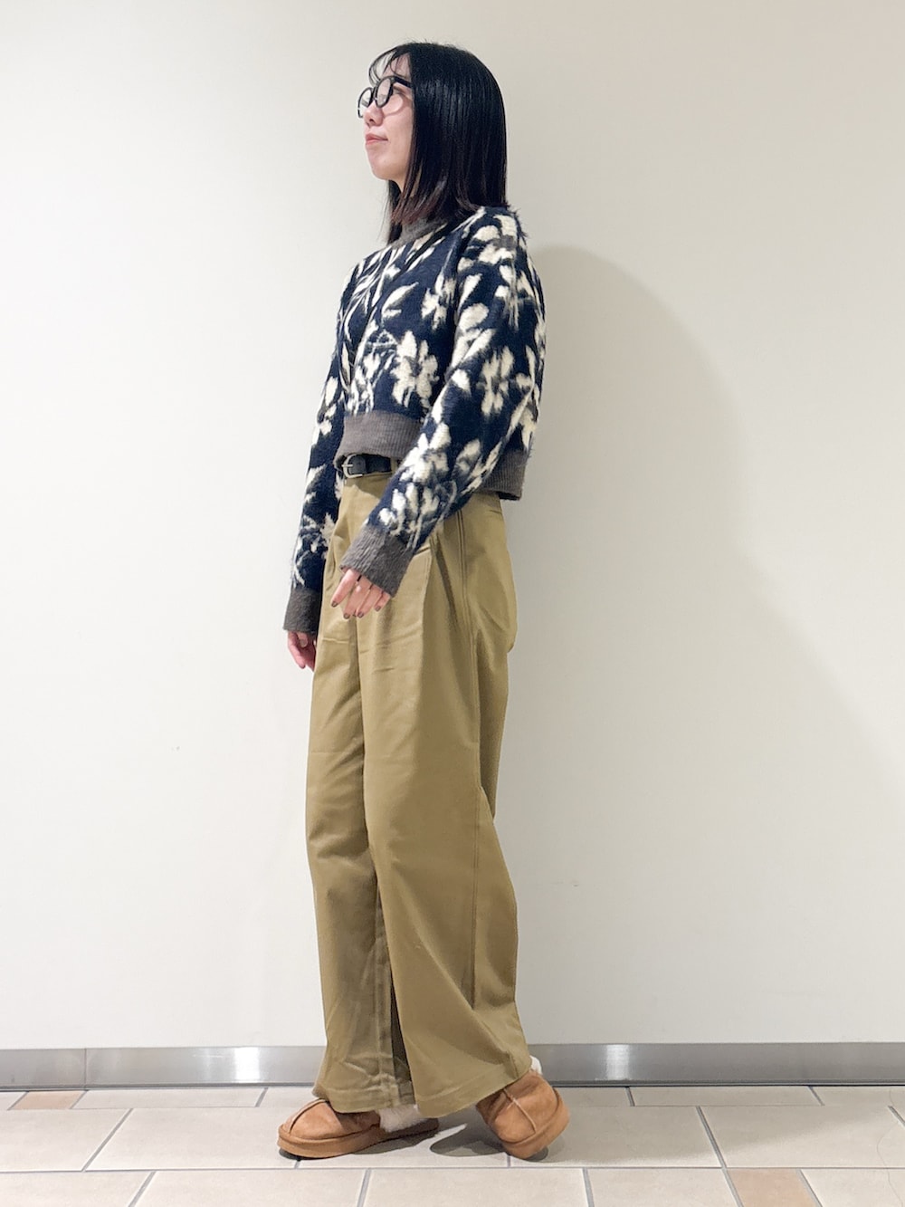 ニットは丈が短めなのでレイヤードも可愛いのですが、、今回はハイウエストのワイドパンツと合わせてみました!