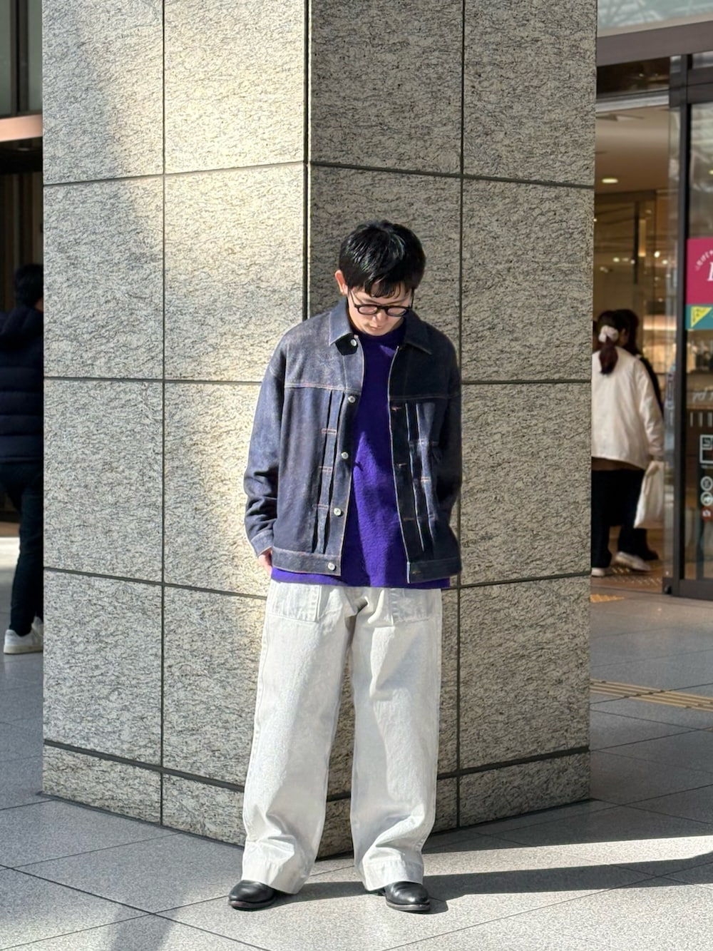 そんなジャケットにはかなり都会的な発色のいいパープルに、これこそミックス感のあるwillowpantsを合わました。
