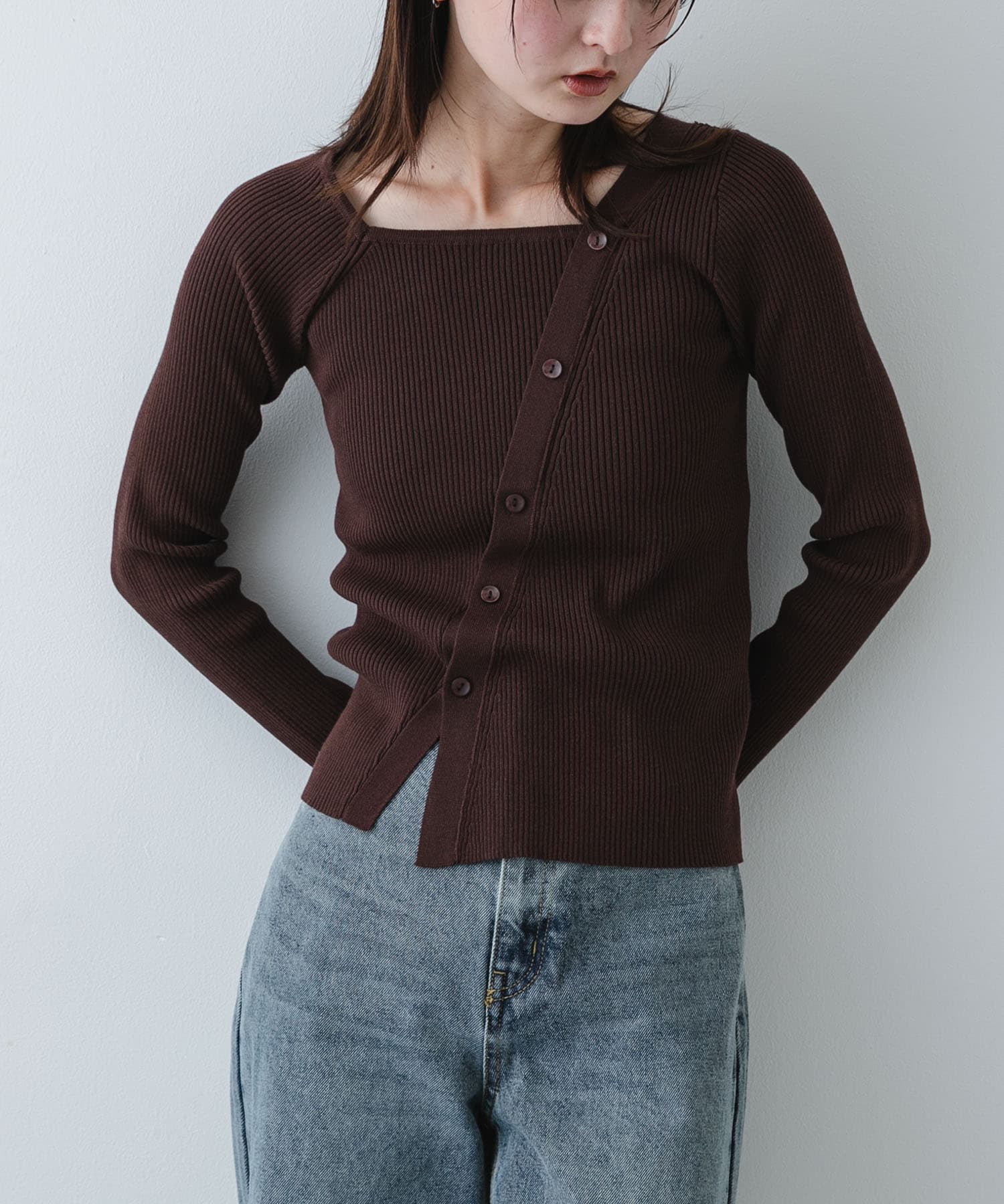 SENSE OF PLACE『洗濯可』アシメデザインリブセーター- カラー: