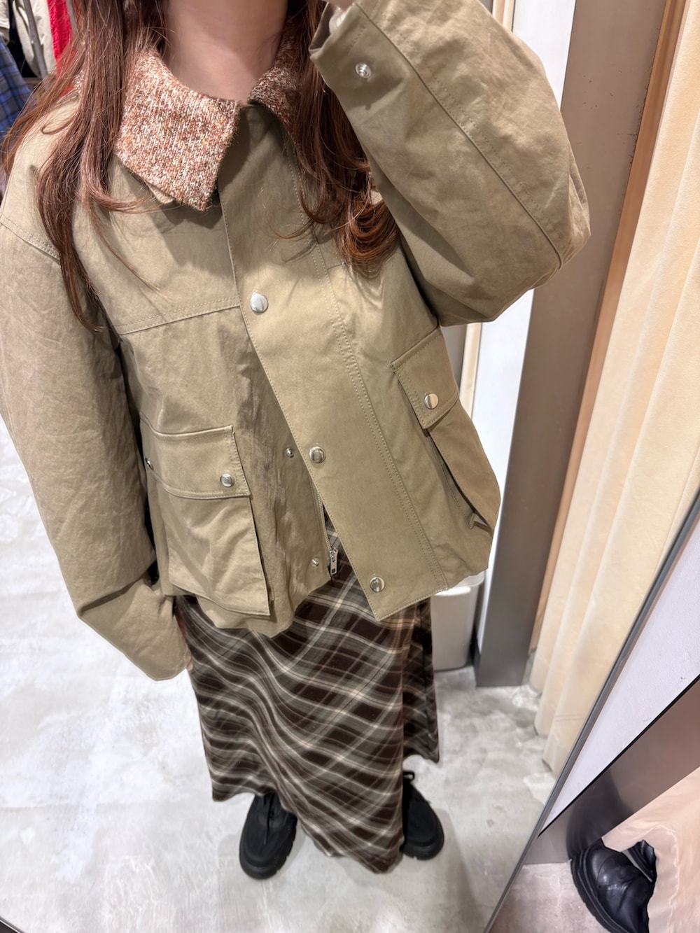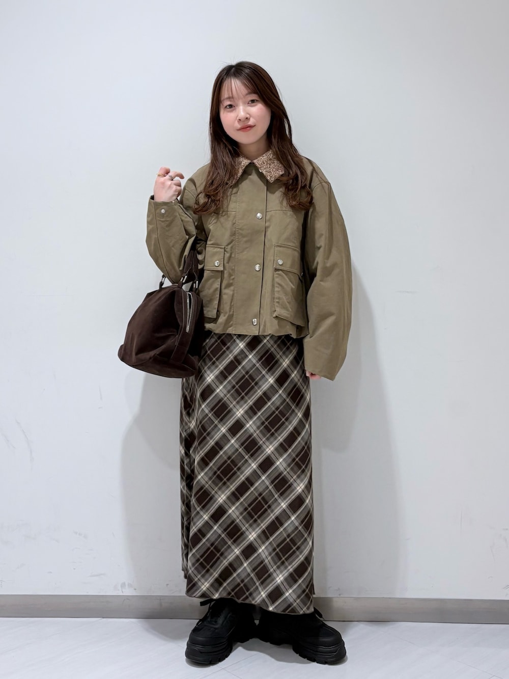 カーキにブラウン合わせで秋冬モードにもピッタリです!
