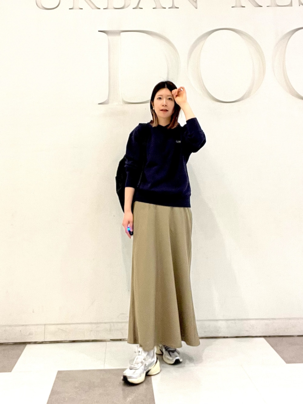 FORK&SPOONのスカートは軽く落ち感のある素材◎ウエスト後ろ部分がゴムで楽に着用できます!ウエスト周りがすっきりと見えるシルエットでおすすめです🫶🏻