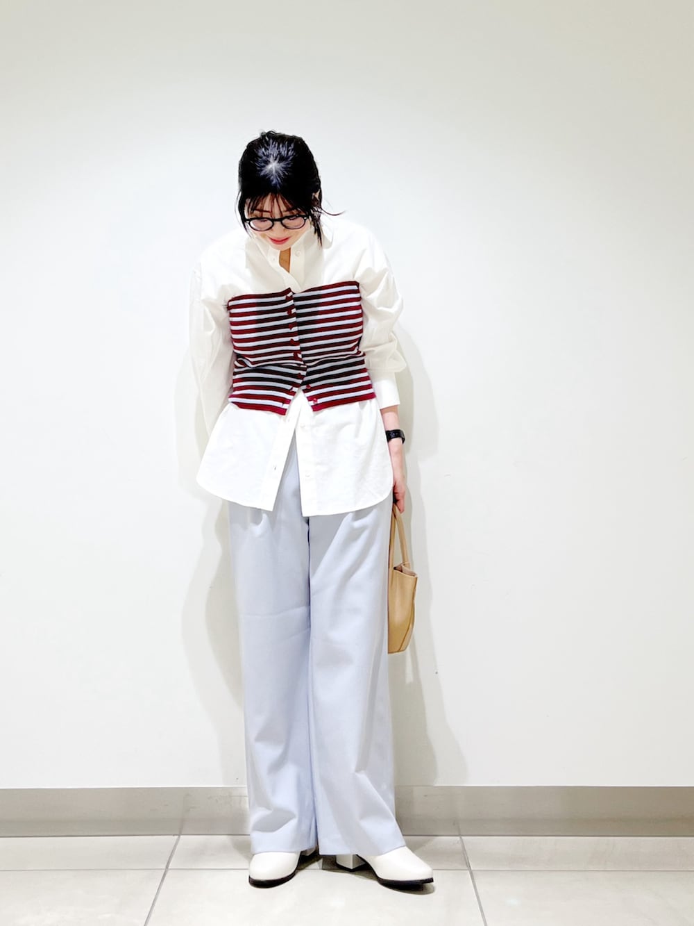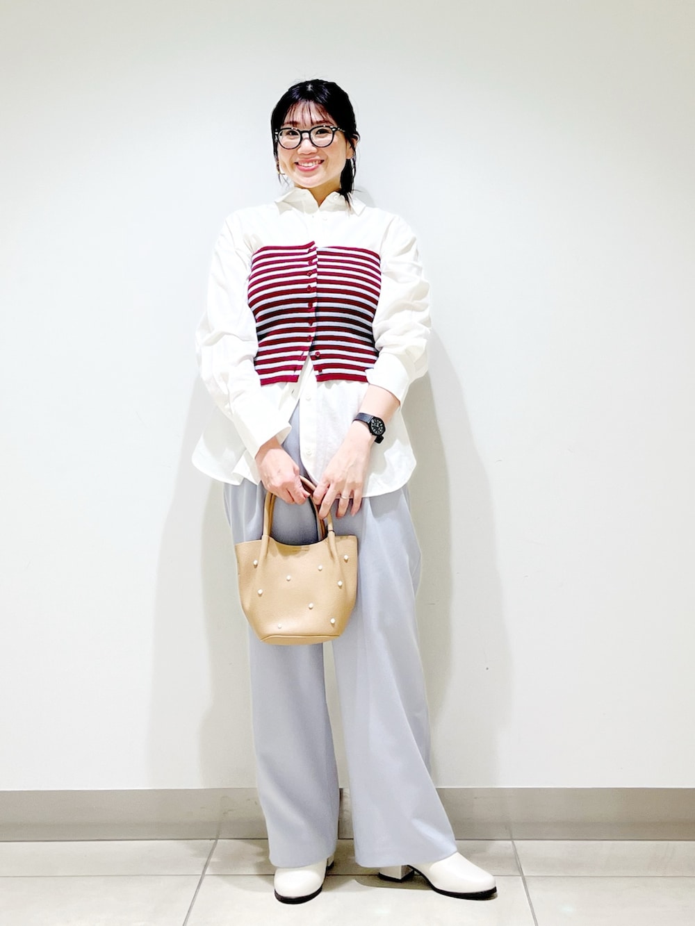 春を着ました☆ボーダービスチェがスタイリングを一気に華やかにしてくれます☆
