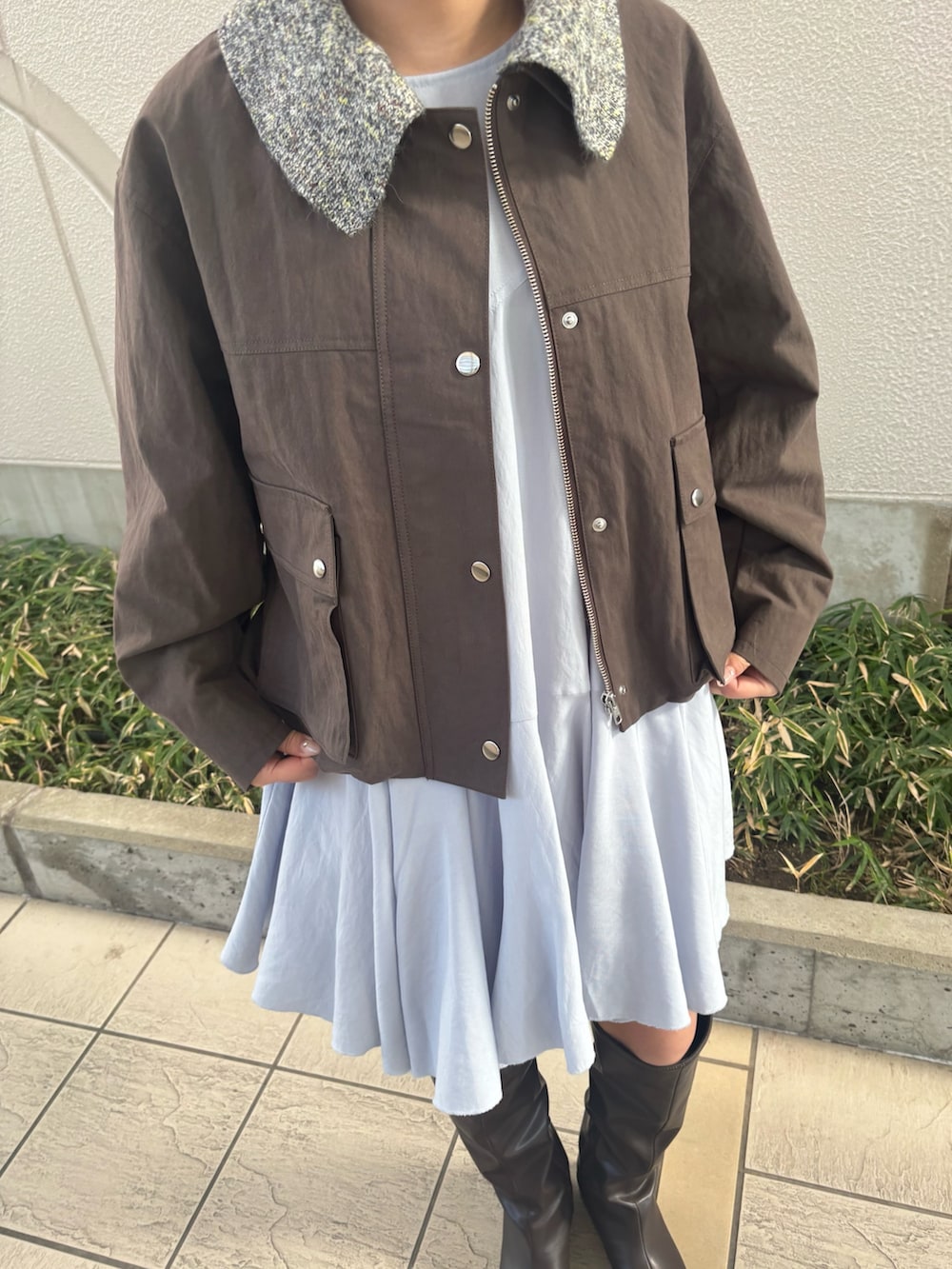 ボリューム感あるワンピースとジャケットあわせで甘すぎず、春スタイルが楽しんでいただけます!