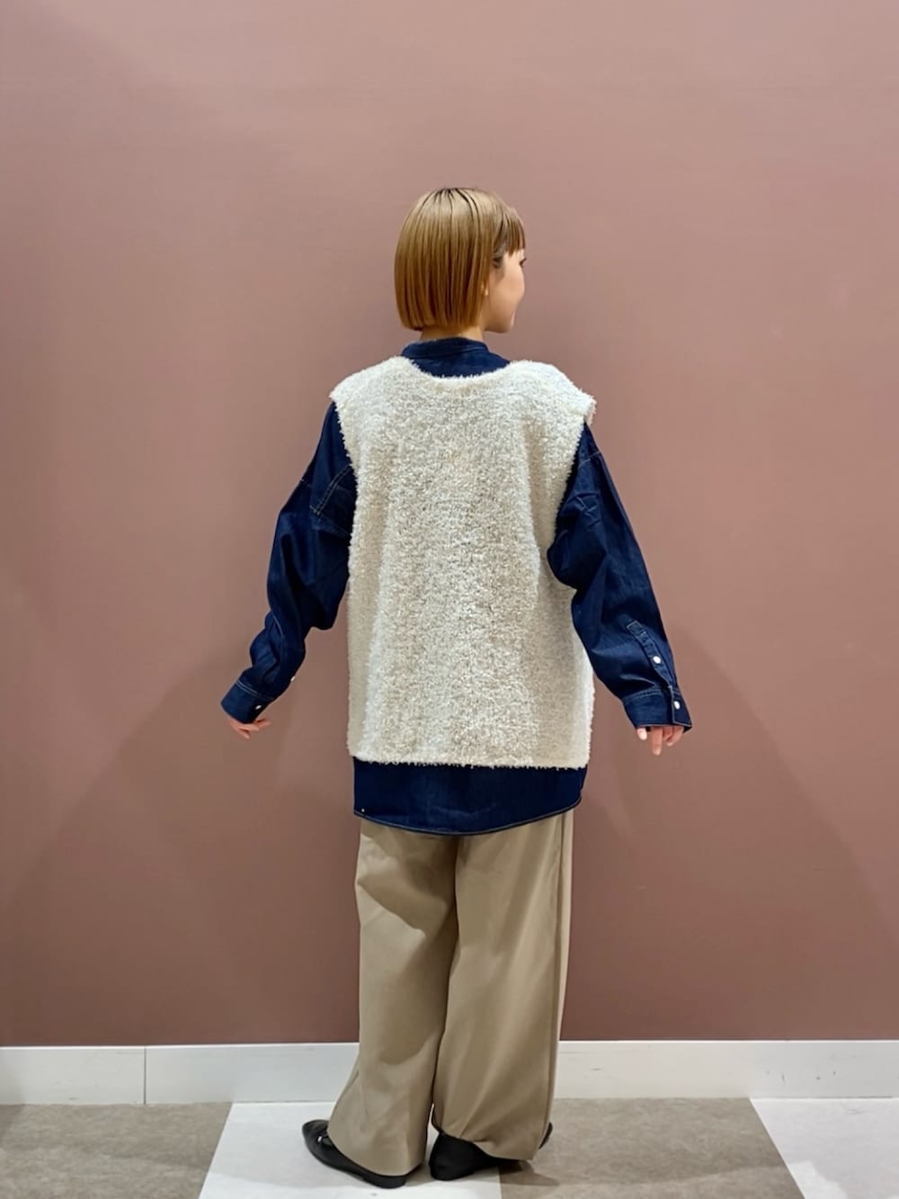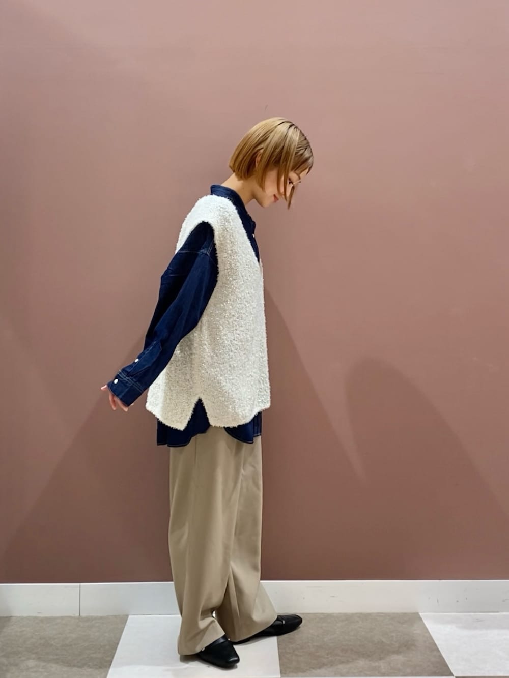 デニムシャツにベストを合わせたきれいめカジュアルコーデの紹介です!