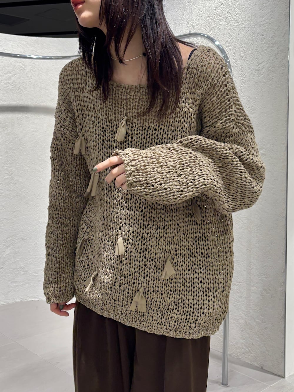 テープヤーンリボンオーバーニット