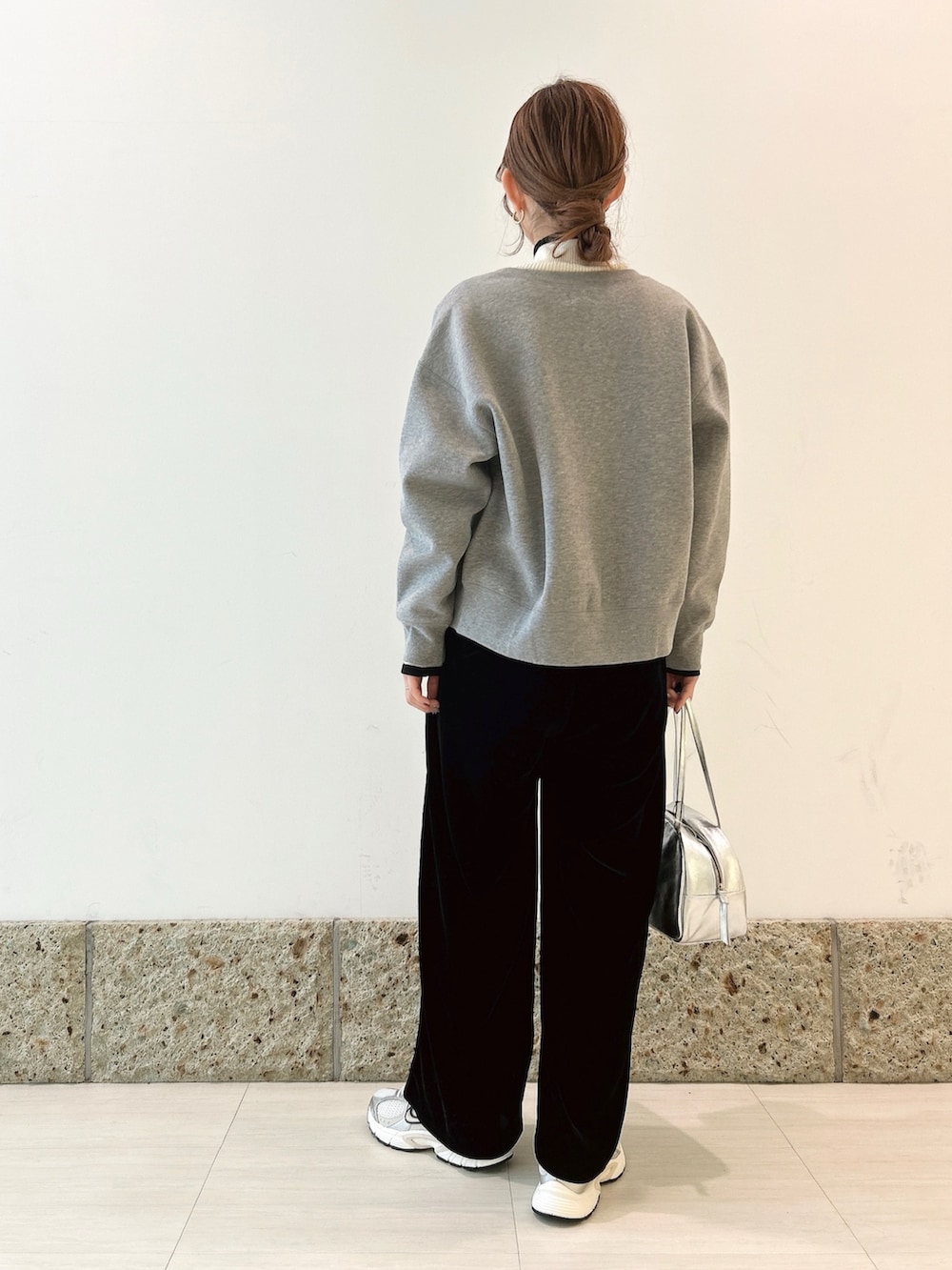 ボトムにはベロア素材が大人可愛いかぐれのパンツを。