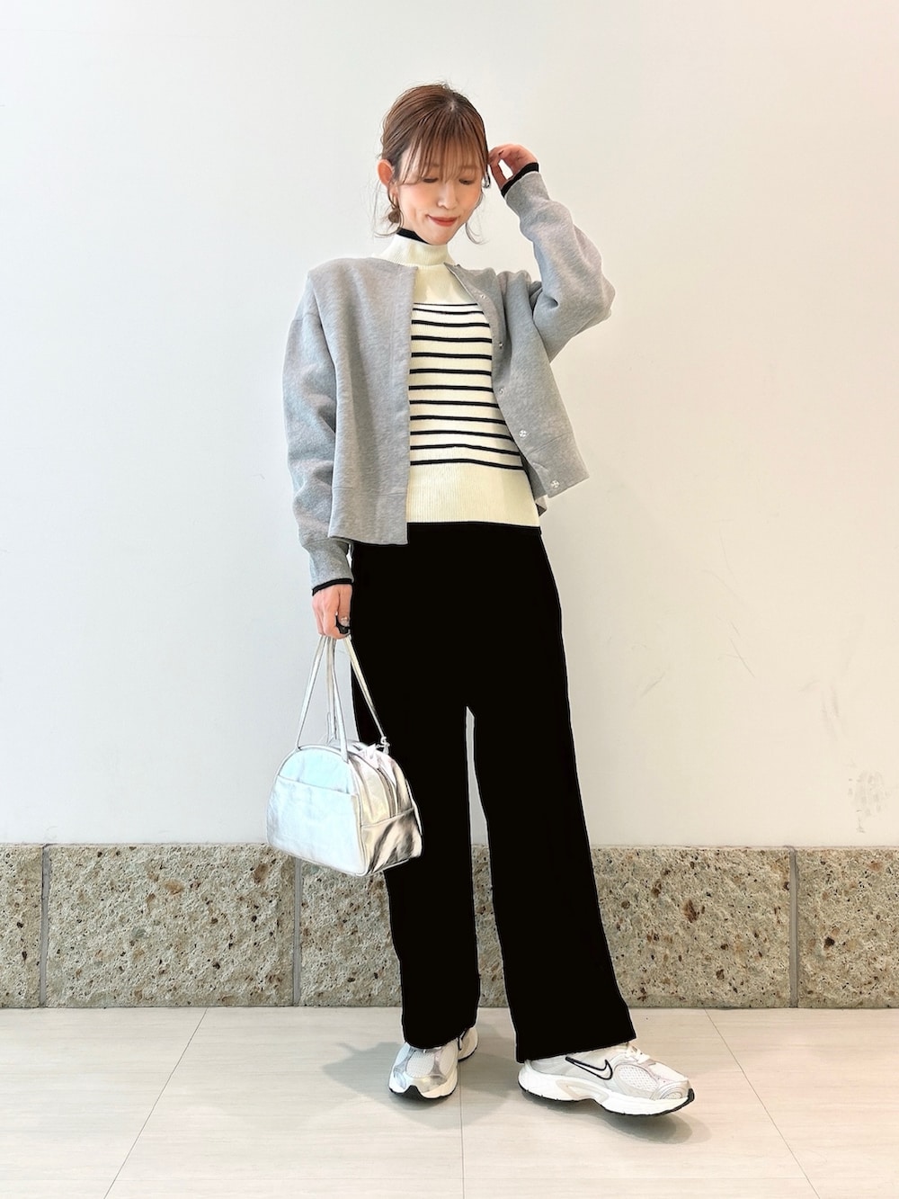 カーディガンは裏起毛素材で暖かく着ていただける一着。