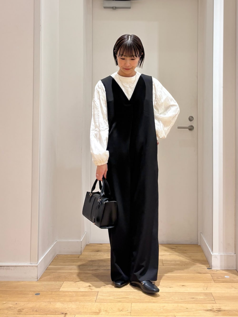 さらりとした落ち感のある素材なので上品な印象も与えてくれてオンオフどちらでも使いやすいシンプルなデザインです◎