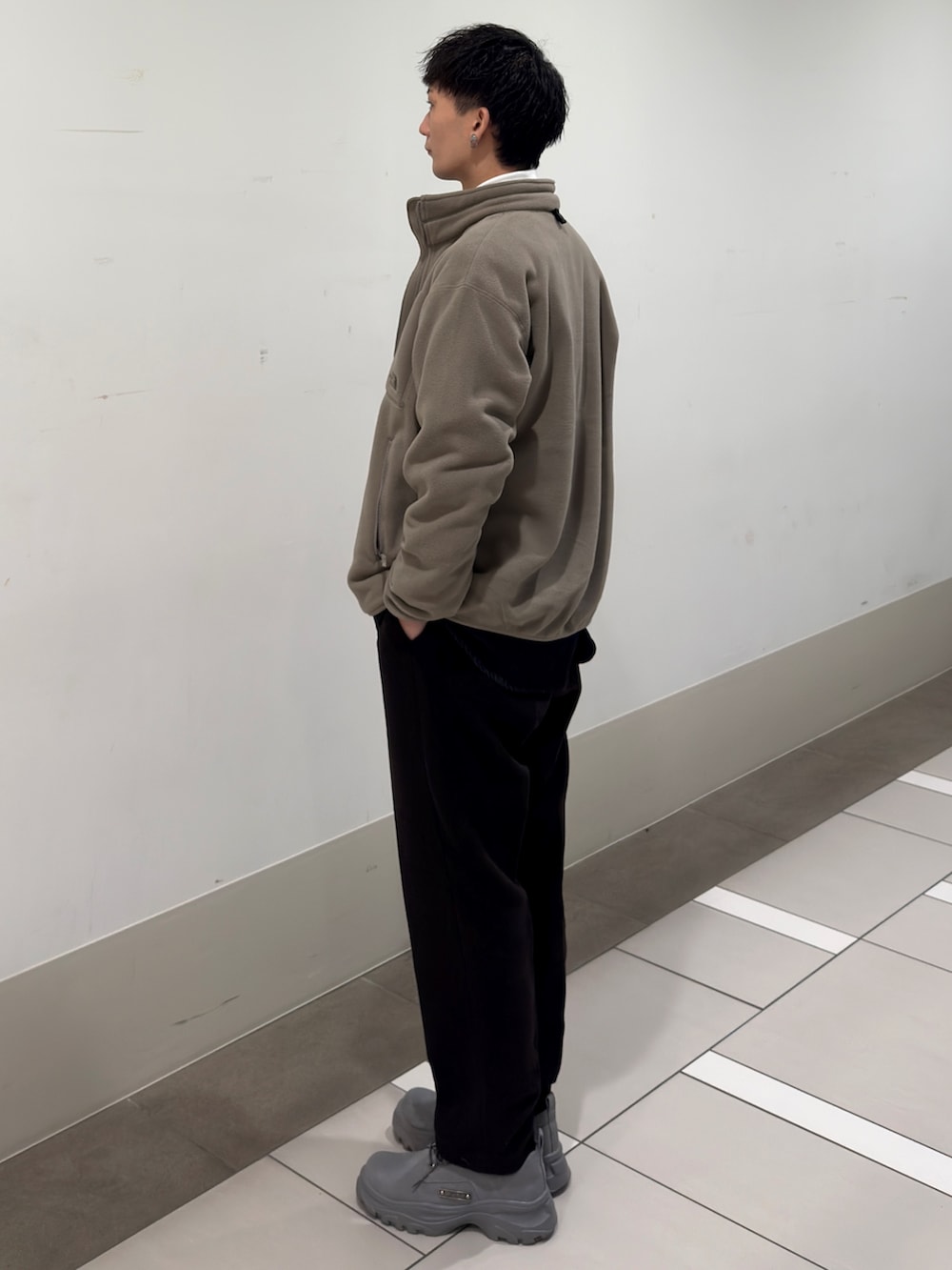 THE NORTH FATH Field Fleece Jacketを主役に、全体をミニマルにまとめたコーディネートです。