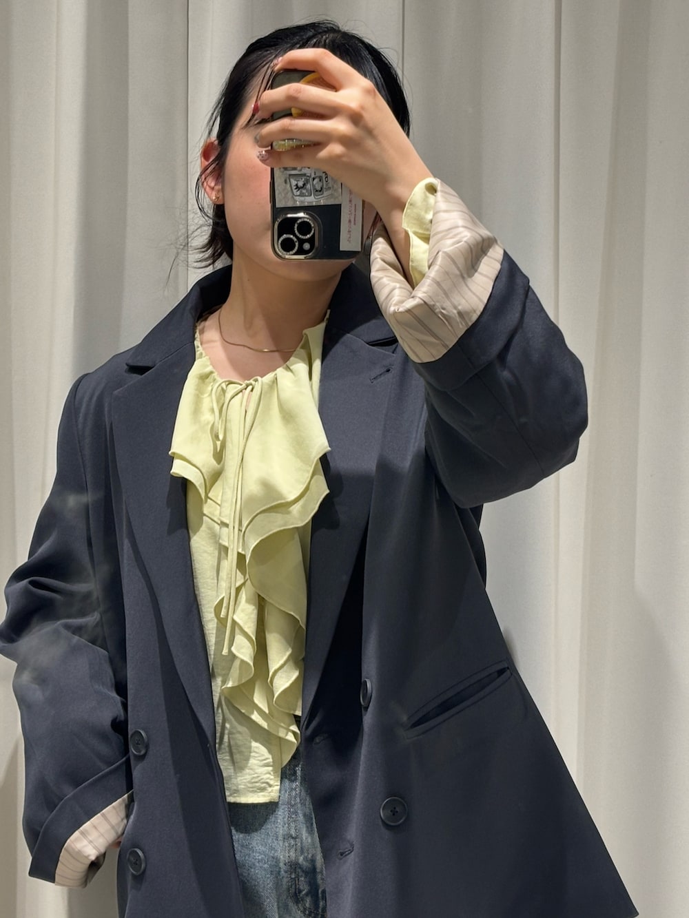 ジャケットとデニムの組み合わせでキレイめカジュアルな雰囲気になるのでオススメです◎