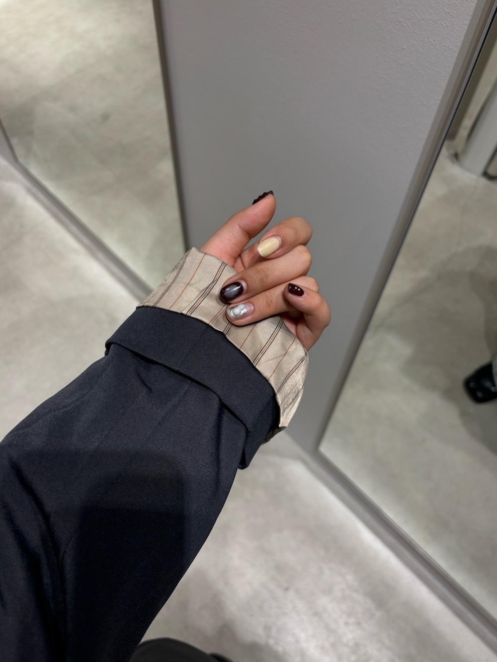 裏地がストライプ柄なので、折ってチラ見せするのも可愛いです👍🏻