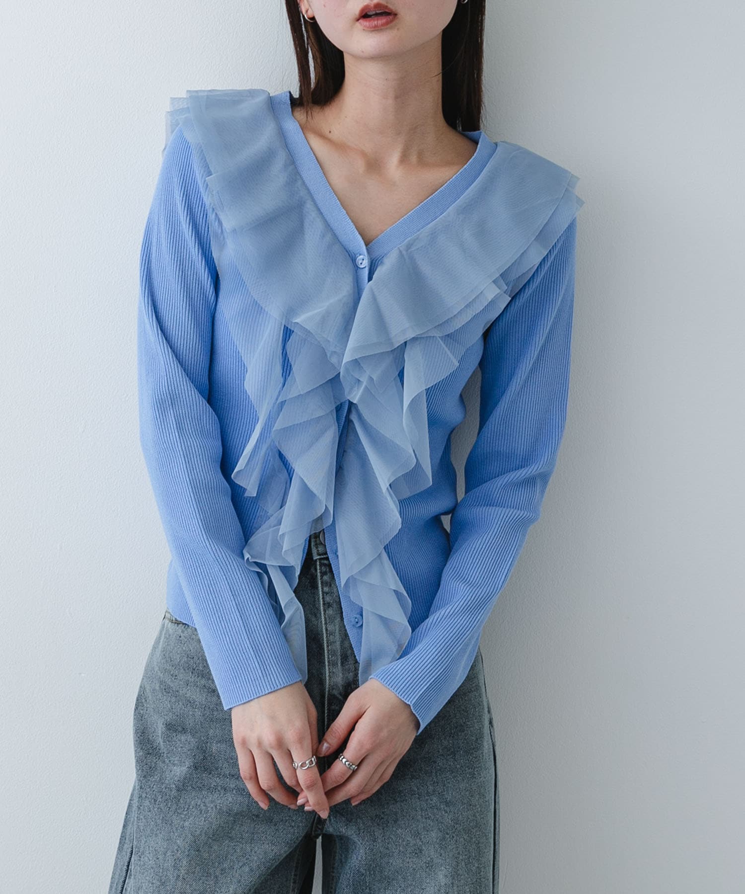 SENSE OF PLACE『洗濯可』チュールフリルニットカーディガン- 着用カラー: