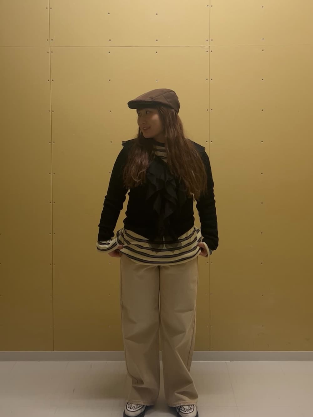 あえてフリルの聞いたカーディガンに、ボーダーのカジュアルなカットソーを合わせてみました😋😋