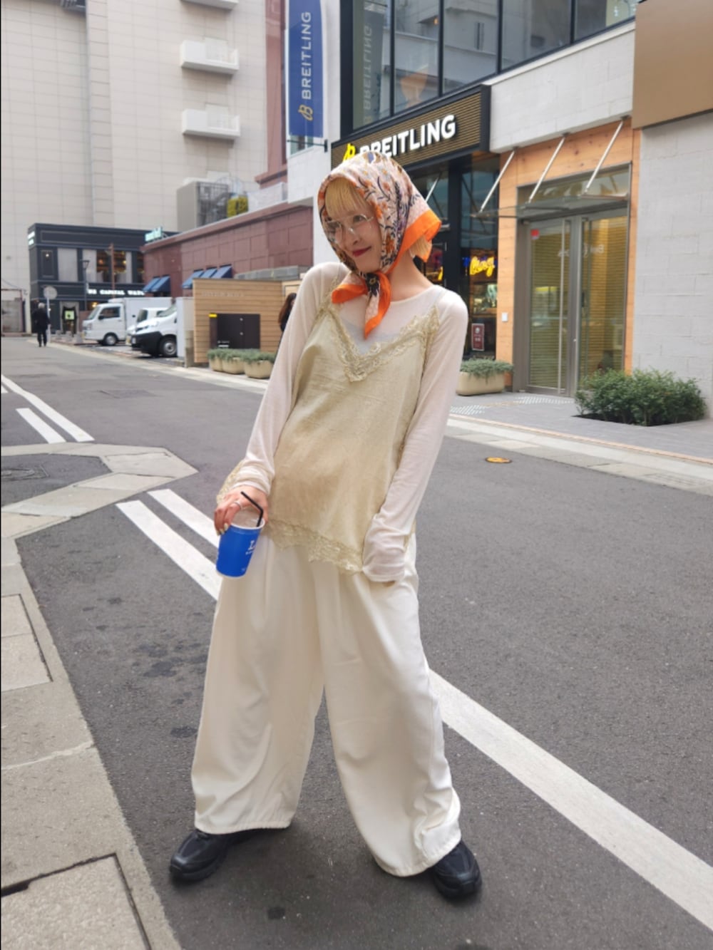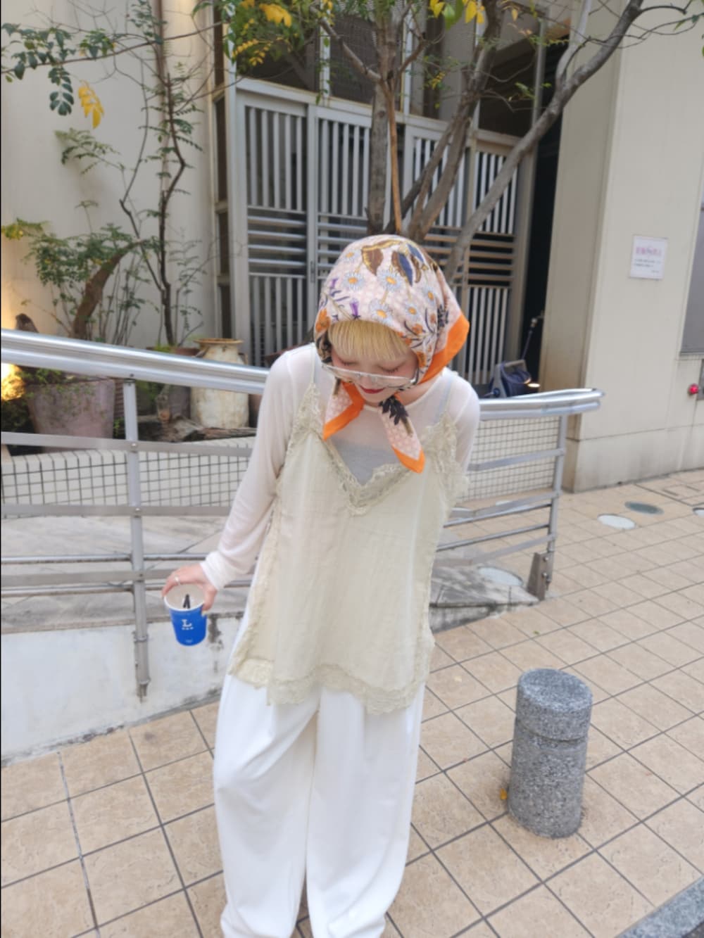 シアーのインナーとボトムもワントーンで合わせたお洒落見えコーディネートです!