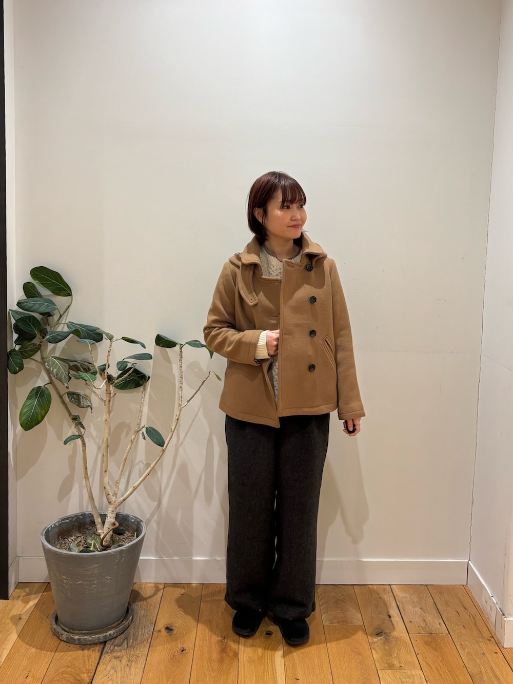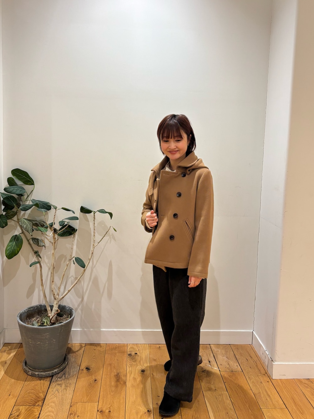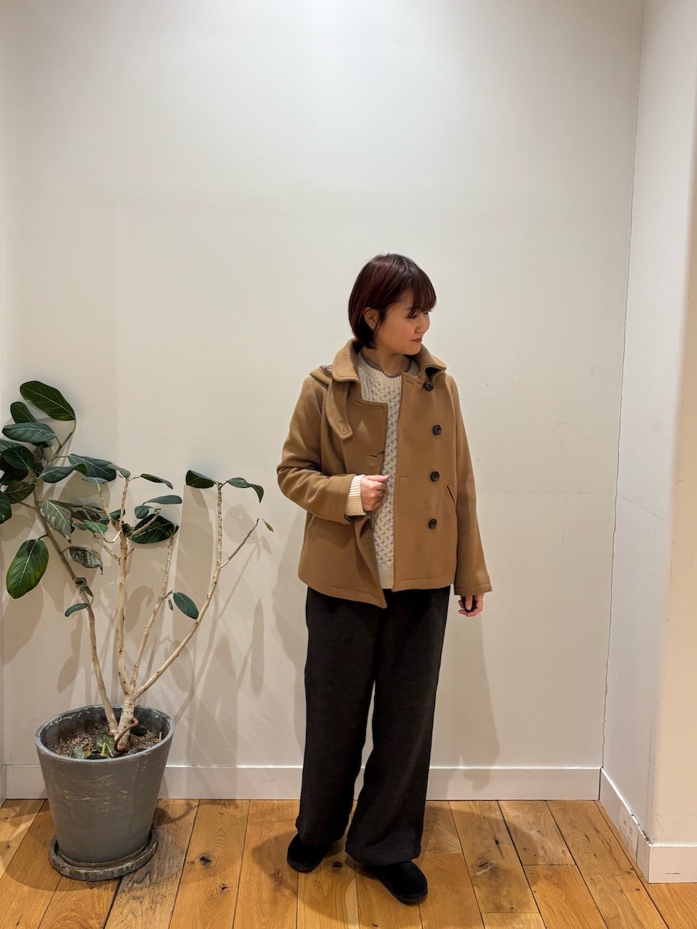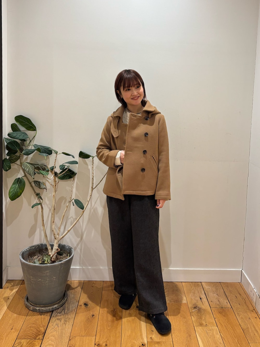 ウールのダッフルアウターは形がかわいいのでコーデの主役になります!