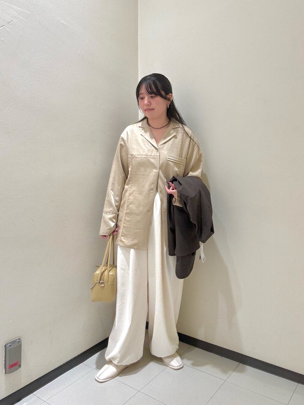 シャツは首元が綺麗に開いてるのでスッキリ見えます♡
