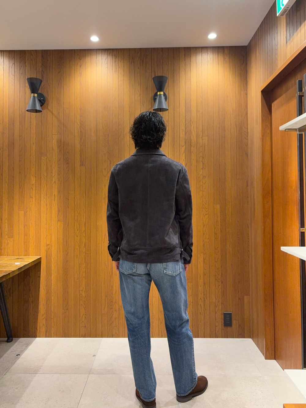 ・ゴートスエードジャケットを主役に、インナーはシンプルに