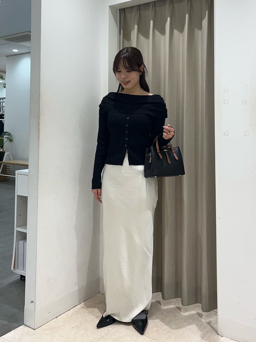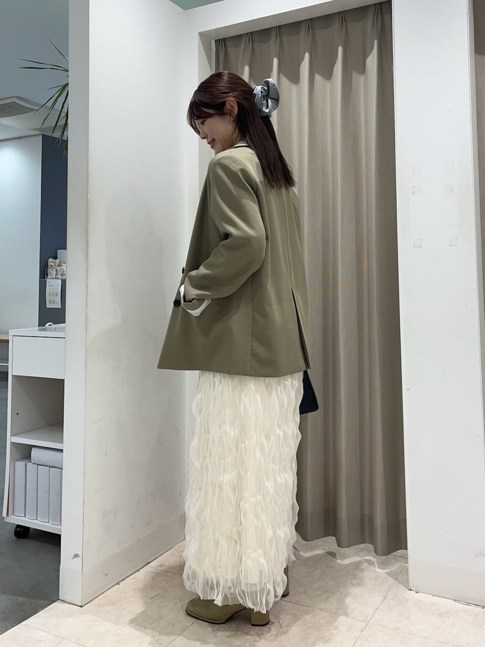 スカートはお客様から好評だったので私も試着がてら。ふんわり感たっぷりなのに膨張しない!!とっても可愛いです💌