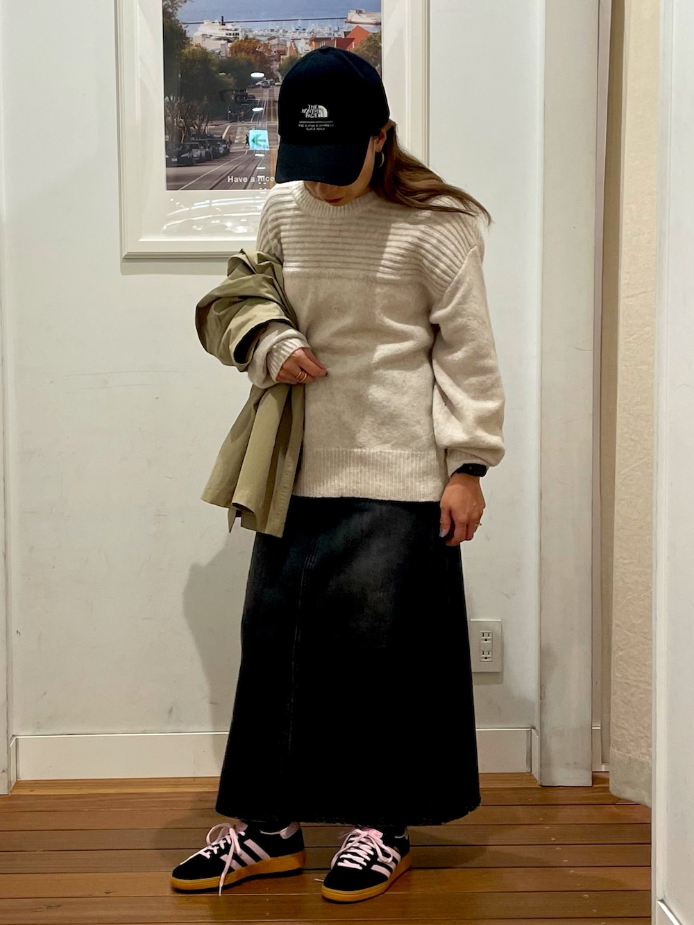 スニーカーのピンクも甘すぎなくてかわいい色合いのためおすすめです。