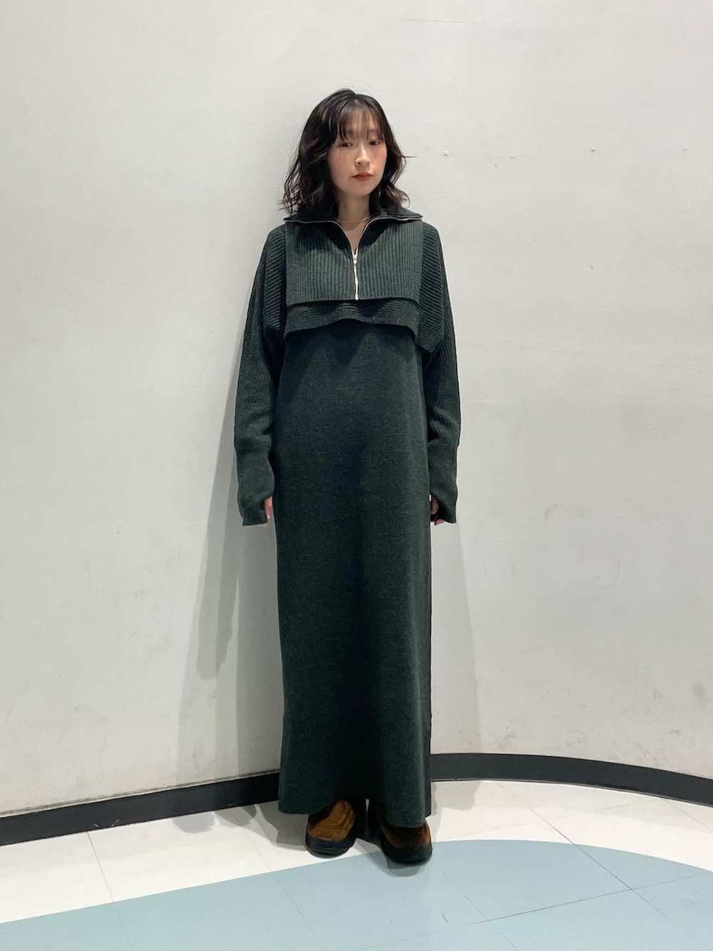 154cmの私も着やすいサイドスリット入りのワンピースはブーツと合わせて防寒しても◎