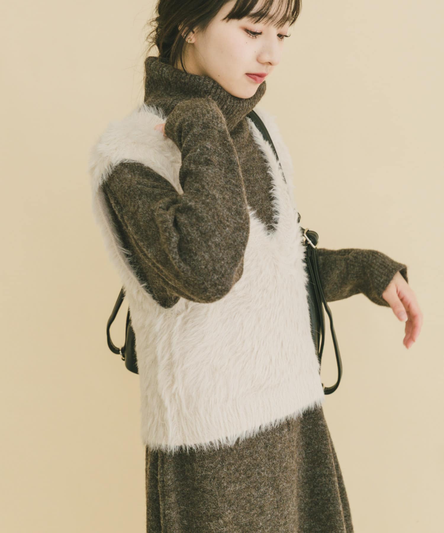 ITEMSシャギーショートニットベスト- 着用カラー: