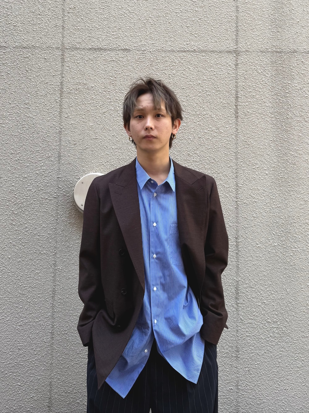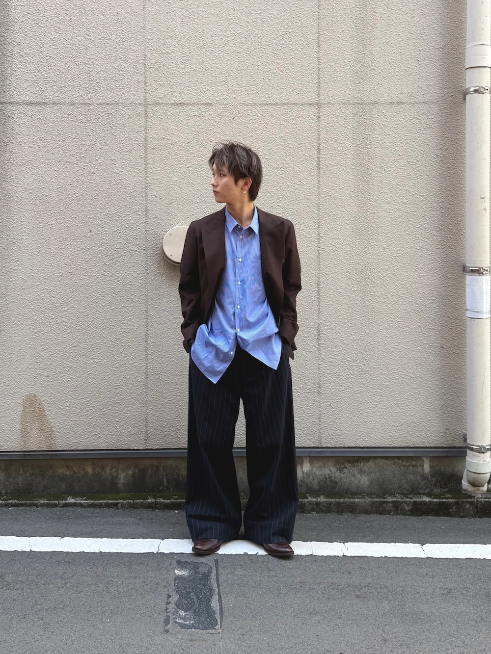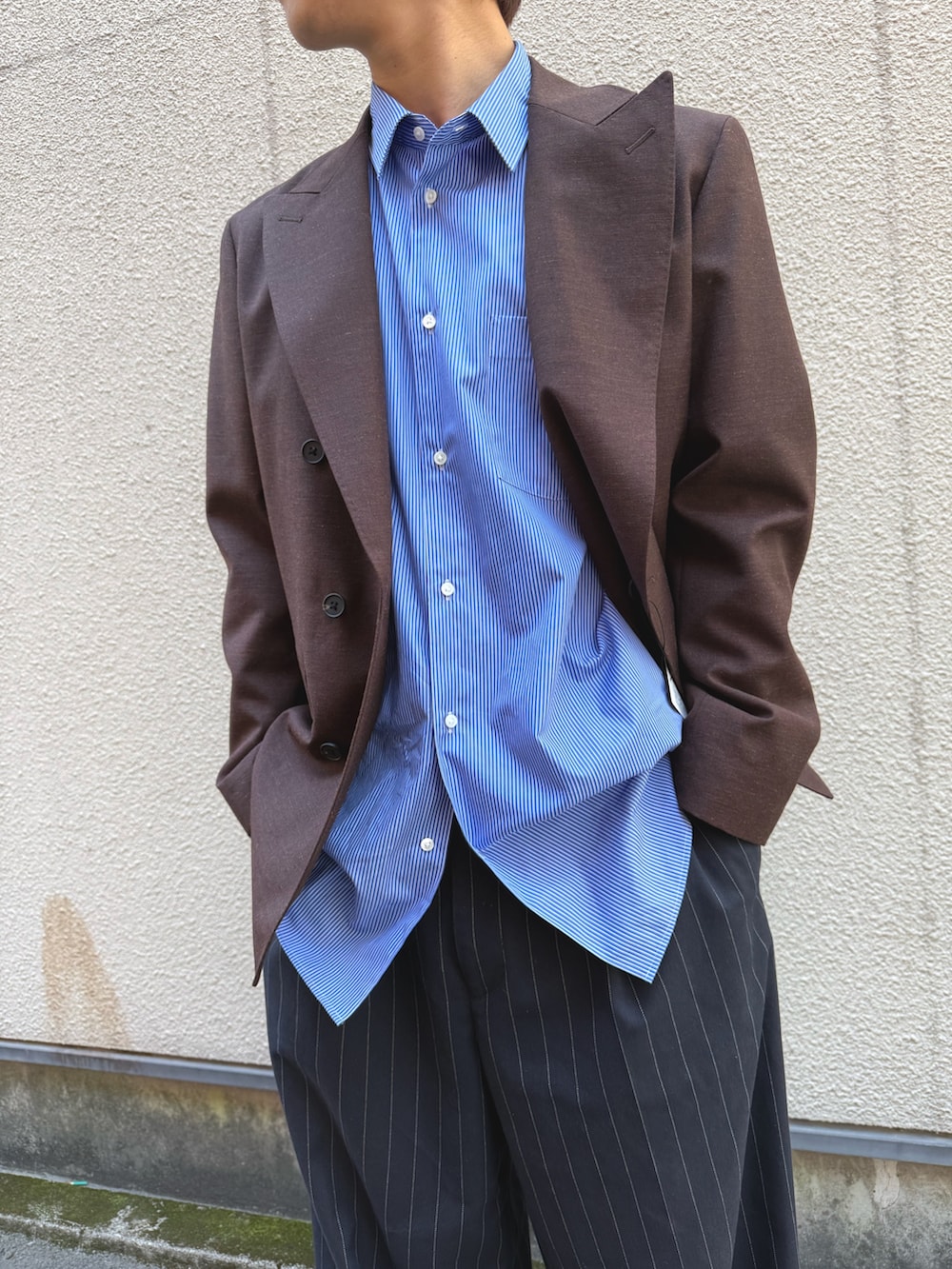 ブルーシャツとブラウンのテーラードで爽やか冬コーデを組んでみました。